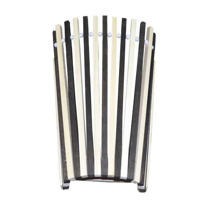 Абажур для бани Луч имеет очень необычный и интересный дизайн: 2 оттенка дерева, нестандартная форма и декор бусинами! Представьте, как он будет смотреться в интерьере! Этот абажур сделан в небольшом размере 25х35х11 см. Материал изделия - липа.