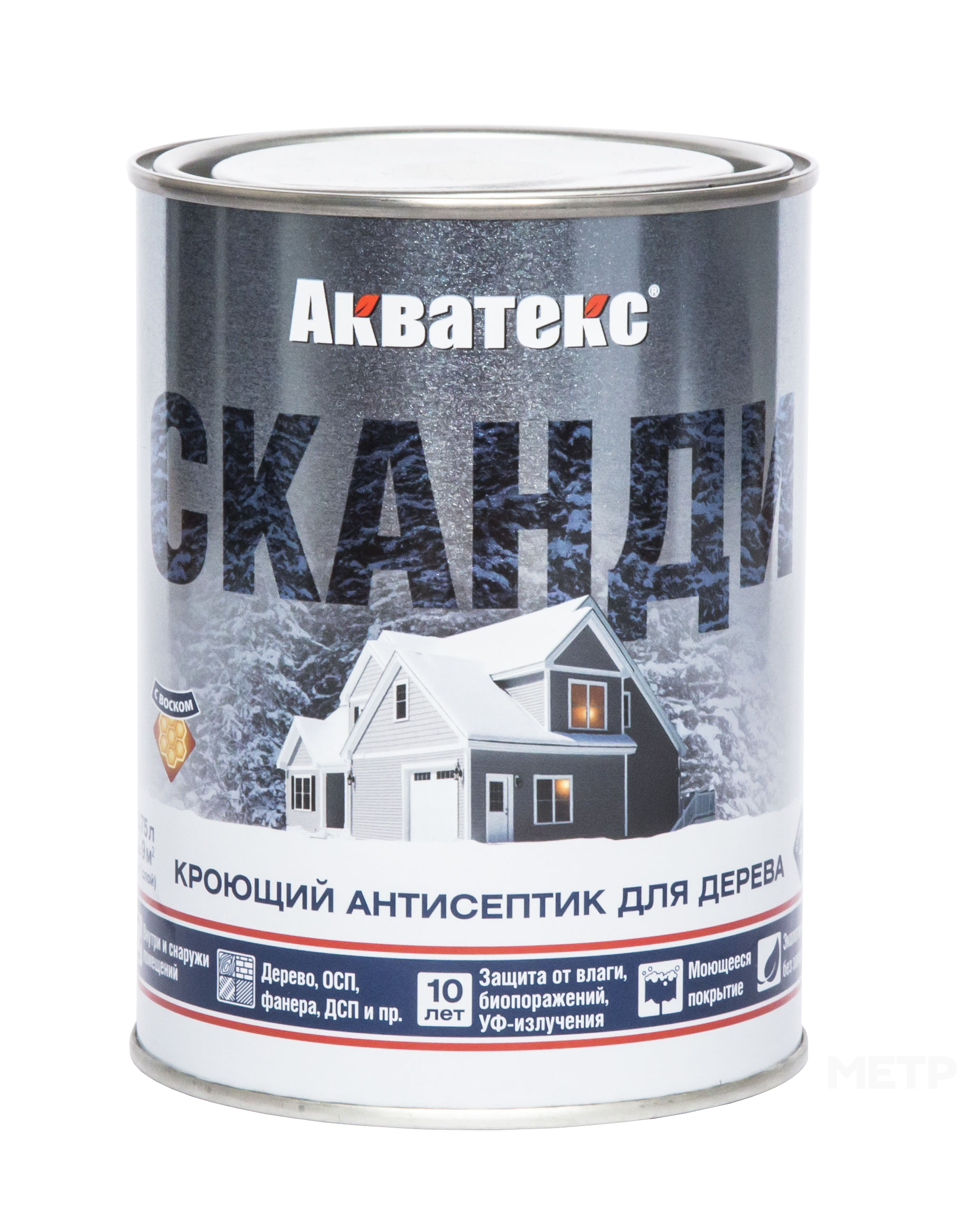 Кроющий антисептик Акватекс Сканди айсберг 0,75 л предназначен для: декоративной обработки древесины с целью получения плотного кроющего покрытия, скрывающего рисунок, но сохраняющего видимой структуру древесины, защиты древесины от воздействия влаги, появления и распространения биопоражений (гниения, плесени, грибка, синевы), УФ-излучения (потемнения, выгорания) и других атмосферных воздействий, обновления деревянных поверхностей, ранее окрашенных алкидными или акриловыми составами, в том числе темных тонов.