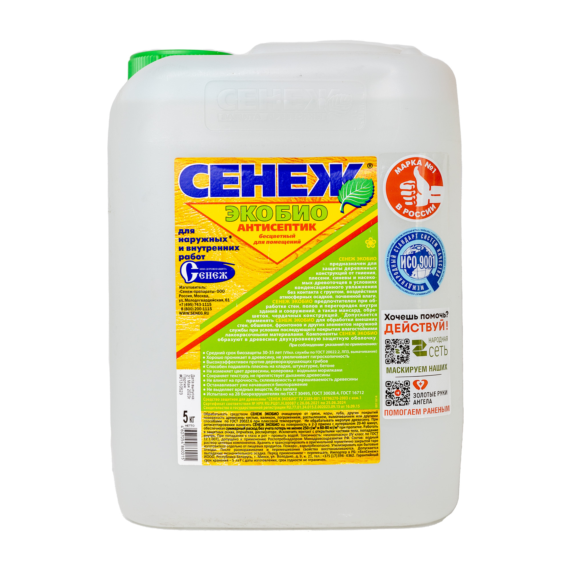 Антисептик Сенеж Экобио 5 кг предназначен для защиты древесины от гниения, плесени, синевы и насекомых-древоточцев внутри помещений и на открытом воздухе (под навесом) в условиях гигроскопического и конденсационного увлажнения без контакта с грунтом, воздействия атмосферных осадков, почвенной влаги самостоятельно или в качестве биозащитной грунтовки под ЛКМ. Допускается применять Сенеж Экобио для защиты элементов наружной службы, подверженных атмосферным осадкам, при последующем покрытии влагостойким лакокрасочным материалом.
