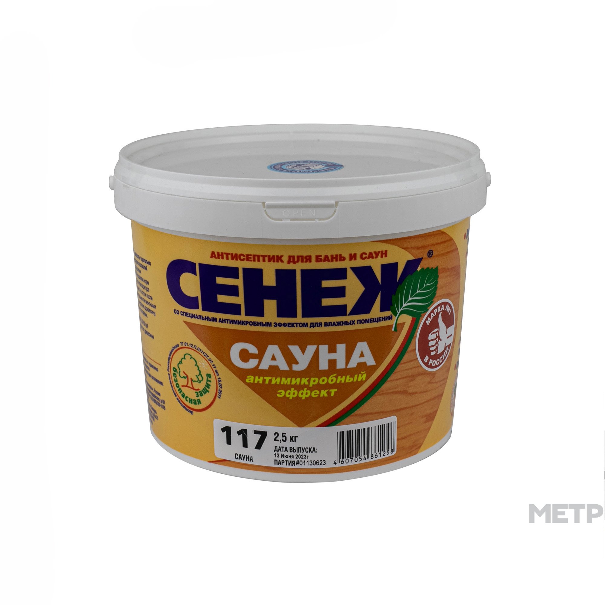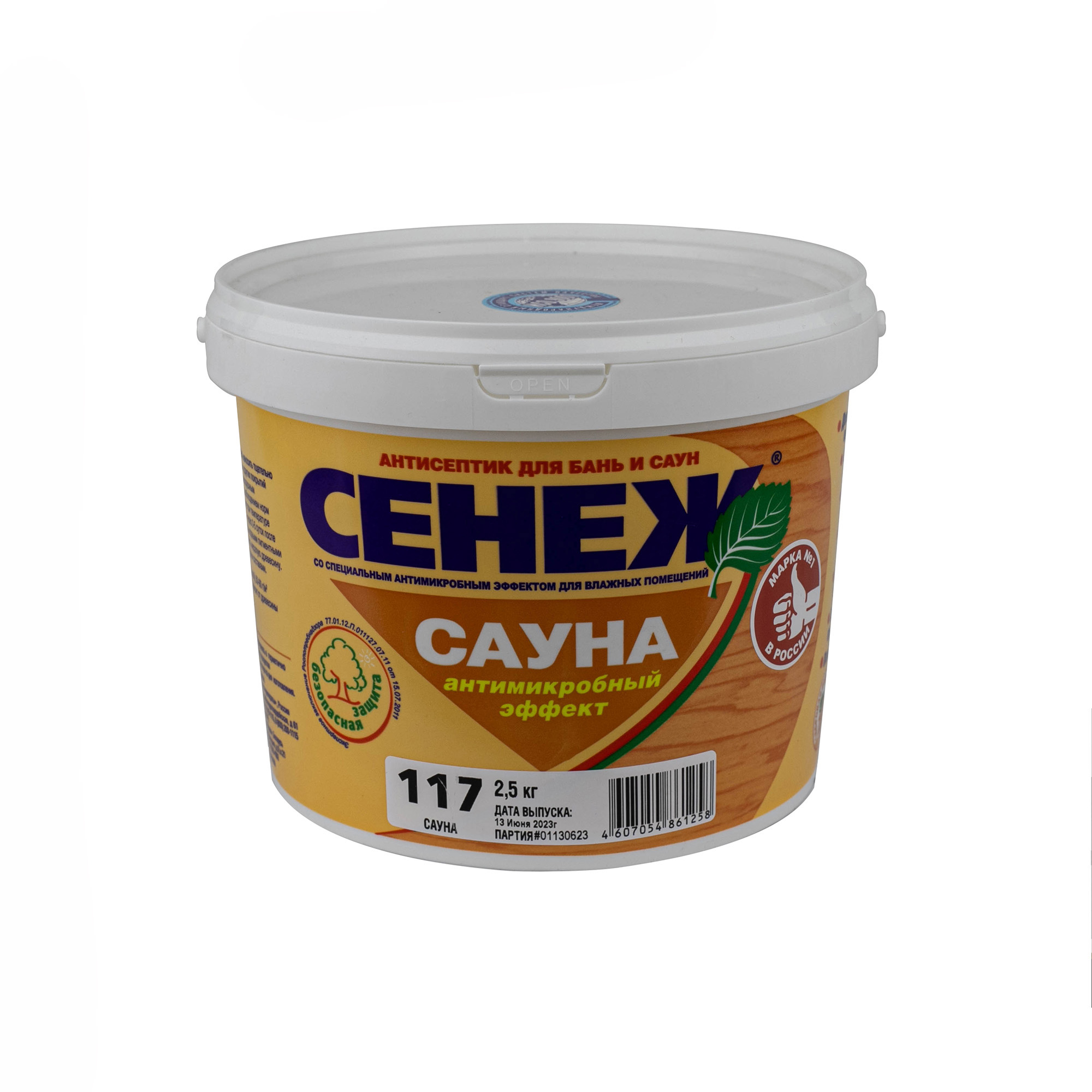 Антисептик Сенеж Сауна 2,5 кг предназначен для защиты древесины внутри бань и саун от плесневых, окрашивающих и дереворазрушающих грибов, водорослей и насекомых-древоточцев в условиях интенсивного циклического увлажнения и воздействия высоких температур. Впервые на рынке, благодаря дополнительному антимикробному эффекту, Сенеж Сауна уничтожает бактерии — возбудители инфекционных заболеваний людей (E.coli, B.subtilis, B.cereus и др.), характерные для мест общего пользования.