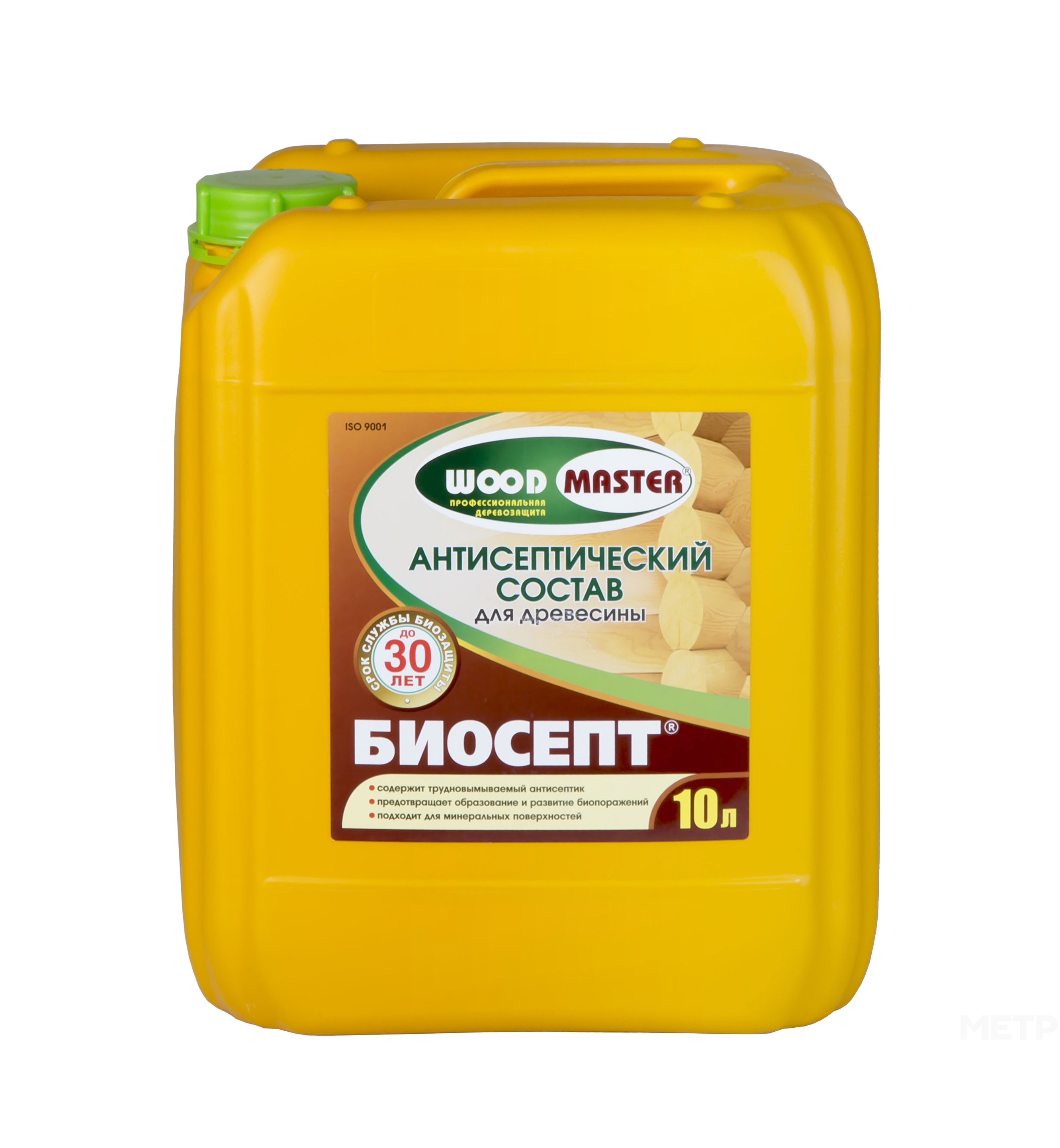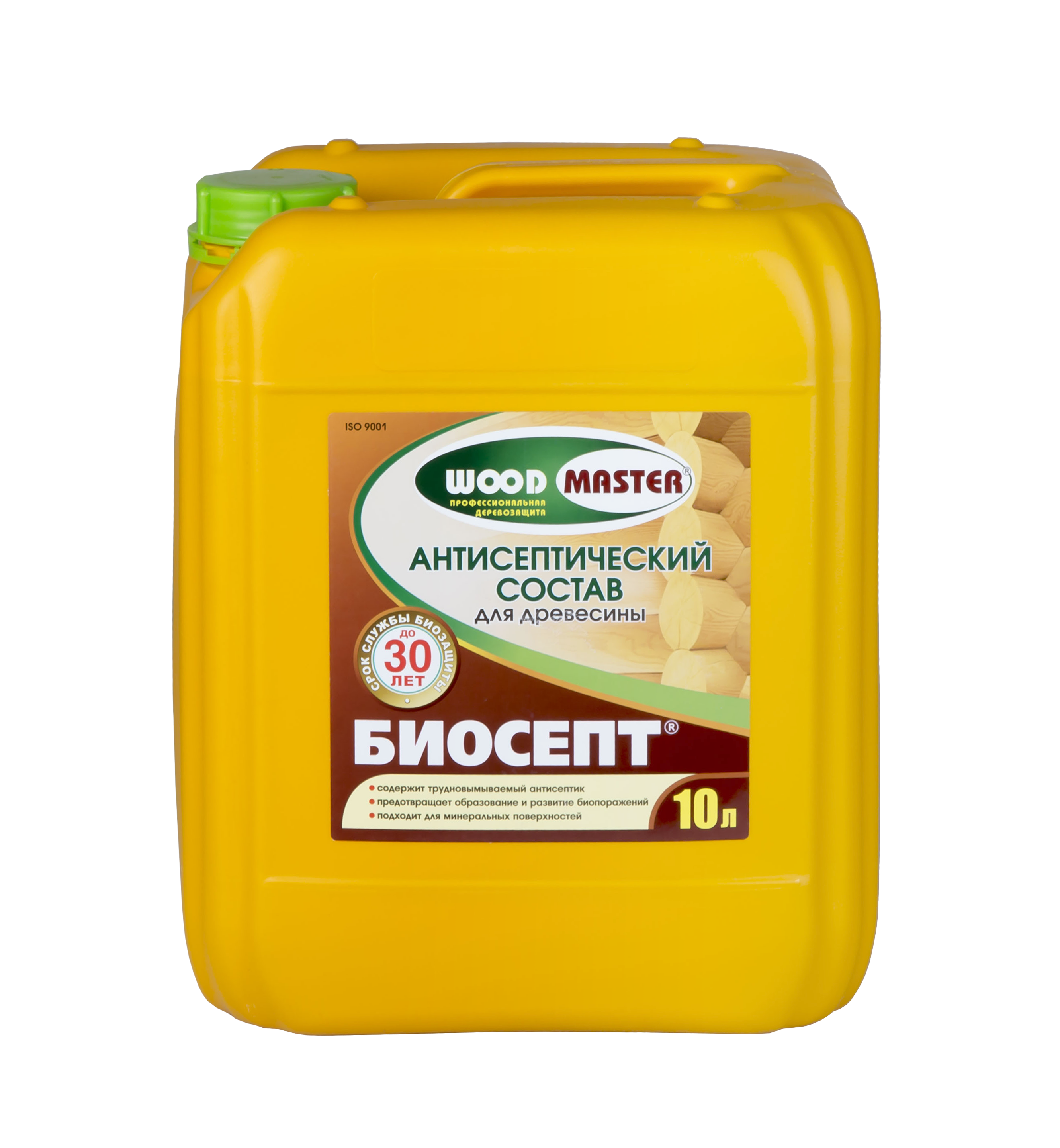 Антисептический состав Биосепт 10 л предназначен для защиты древесины, находящейся в нормальных условиях эксплуатации (I – VIII классы условий службы по ГОСТ 20022.2-80) от биопоражений (гниения, плесени, грибка, синевы), защиты минеральных поверхностей от биопоражений (плесени, грибка).