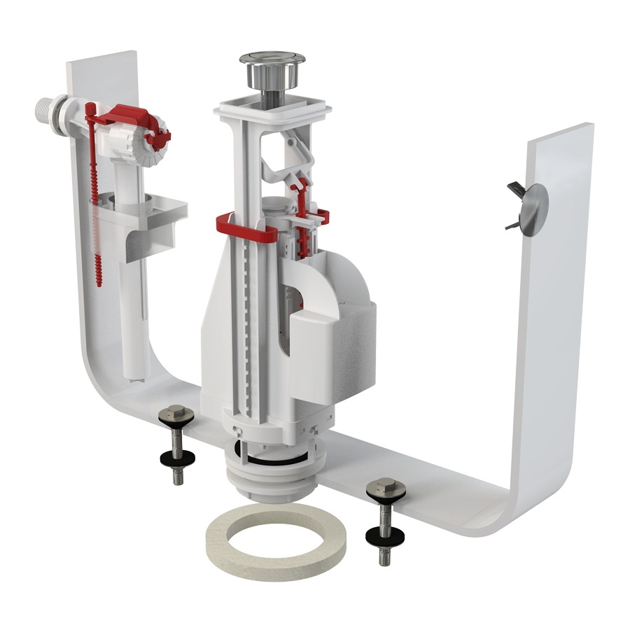 Арматура с нижней подводкой кнопка 2 режима хром предназначена для организации впуска и слива воды в бачке унитаза. Комплект включает в себя впускной механизм с нижним подводом воды и пластиковой резьбой ½, Alcadrain A17 и механизм слива воды с двойным режимом работы A08A. Арматура SA08AS регулируется по высоте в зависимости от высоты сливного бачка, также есть возможность регулировать уровень воды в бачке с помощью поплавка, слив воды двойной на 3 и 6 литров осуществляется с помощью хромированной двойной кнопки. В комплекте винты крепления бачка к унитазу и необходимые прокладки.