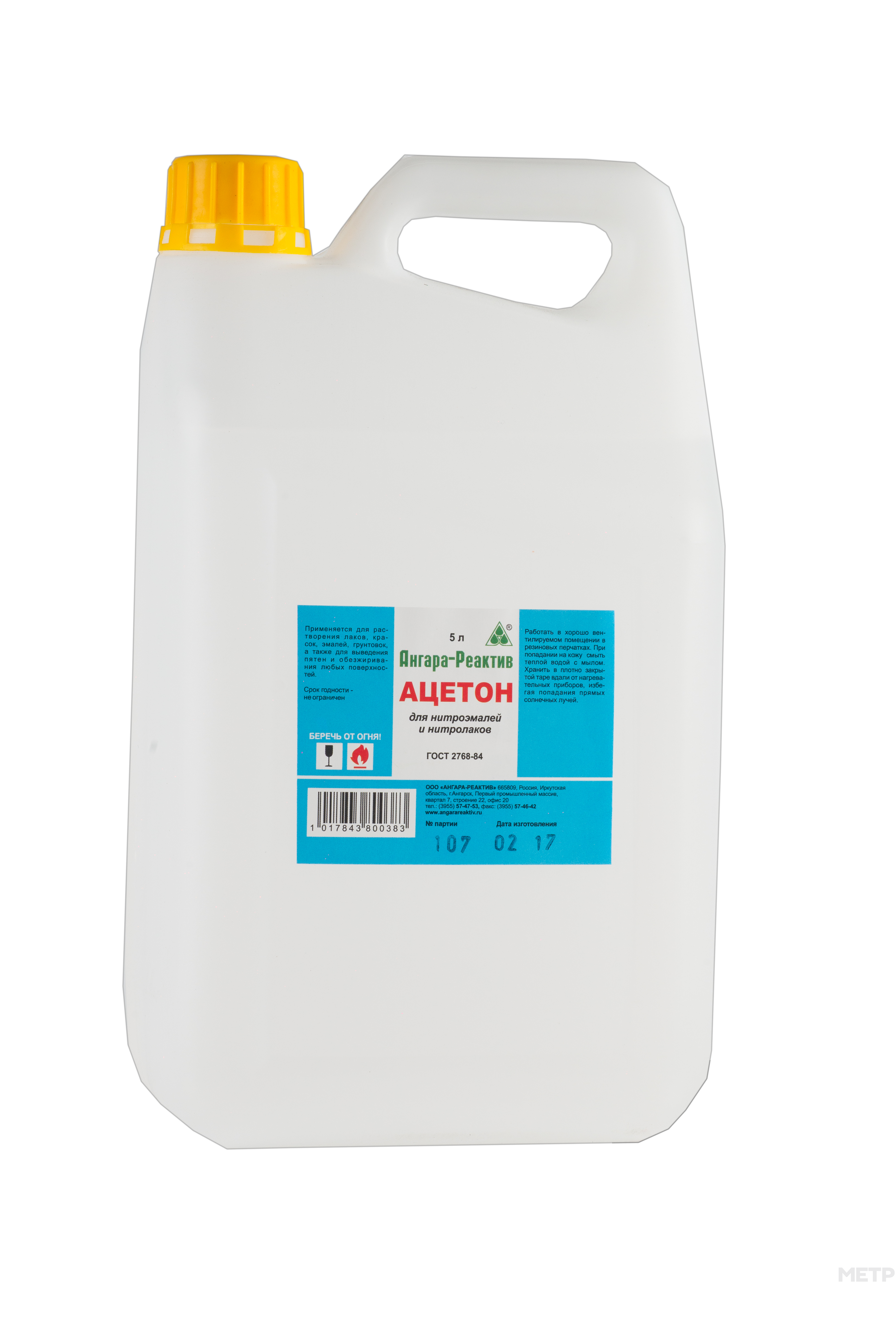 Ацетон Ангара-Реактив (500 мл) применяется: 1. для растворения природных смол, масел, диацетата целлюлозы, полистирола, эпоксидных смол, сополимеров винилхлорида, полиакрилатов, хлоркаучука, для обезжиривания поверхности; 2. для разбавления, нитроэмалей, нитролаков, грунтовок, нитрошпатлевак общего назначения; 3. для очищения от монтажной пены поверхностей и инструментов.