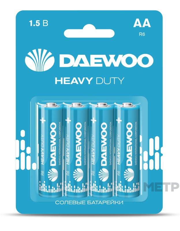 Батарейка щелочная DAEWOO Heavy Duty R6 4 шт. Используются преимущественно в таких устройствах, как пульты, колонки, магнитофоны и т.д. Напряжение 1,5 В. Страна производитель - Китай. Доступная цена.
