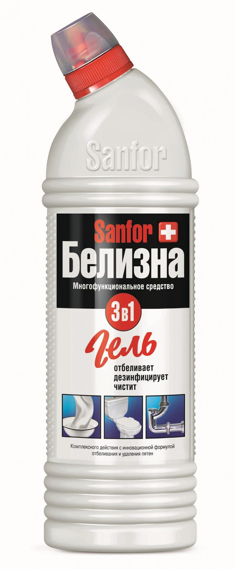 Белизна «Санфор 3-в-1», 500 г, представляет собой концентрированный, дезинфицирующий гель, который разбавляется в пропорции 2 колпачка средства на 10 литров теплой или холодной воды. Таким раствором можно замочить белье или помыть пол, сантехнику и другие бытовые предметы хозяйственного назначения.