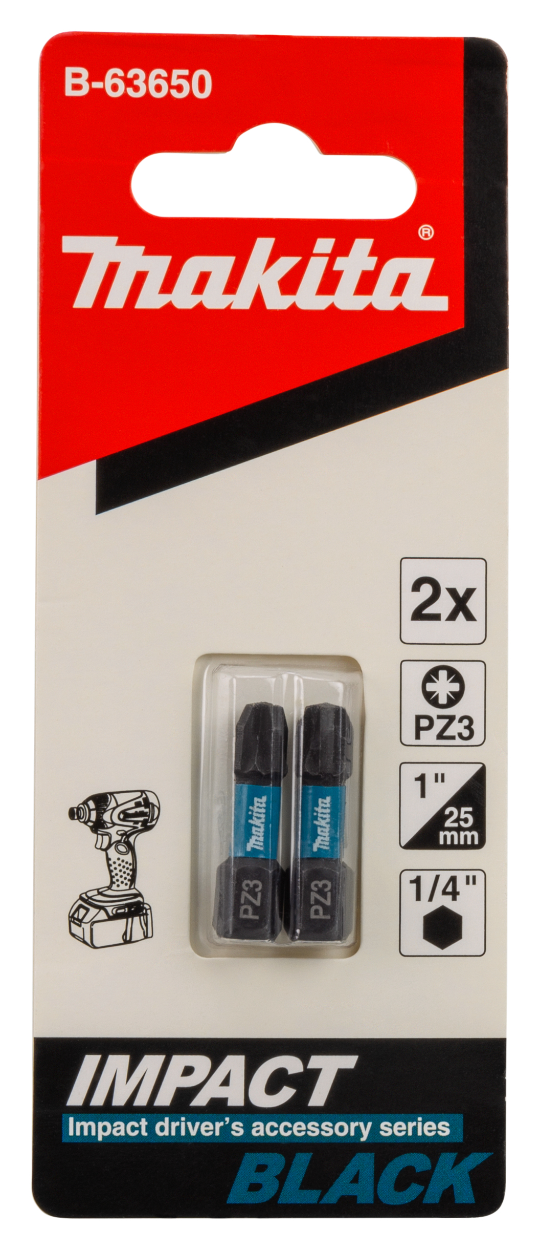 Бита PZ3 25мм Impact Black 1/4 2шт Подходит для работы электродрелью со стандартным трёхкулачковым зажимным патроном и шуруповёртом с шестигранным патроном для быстрой смены насадки.