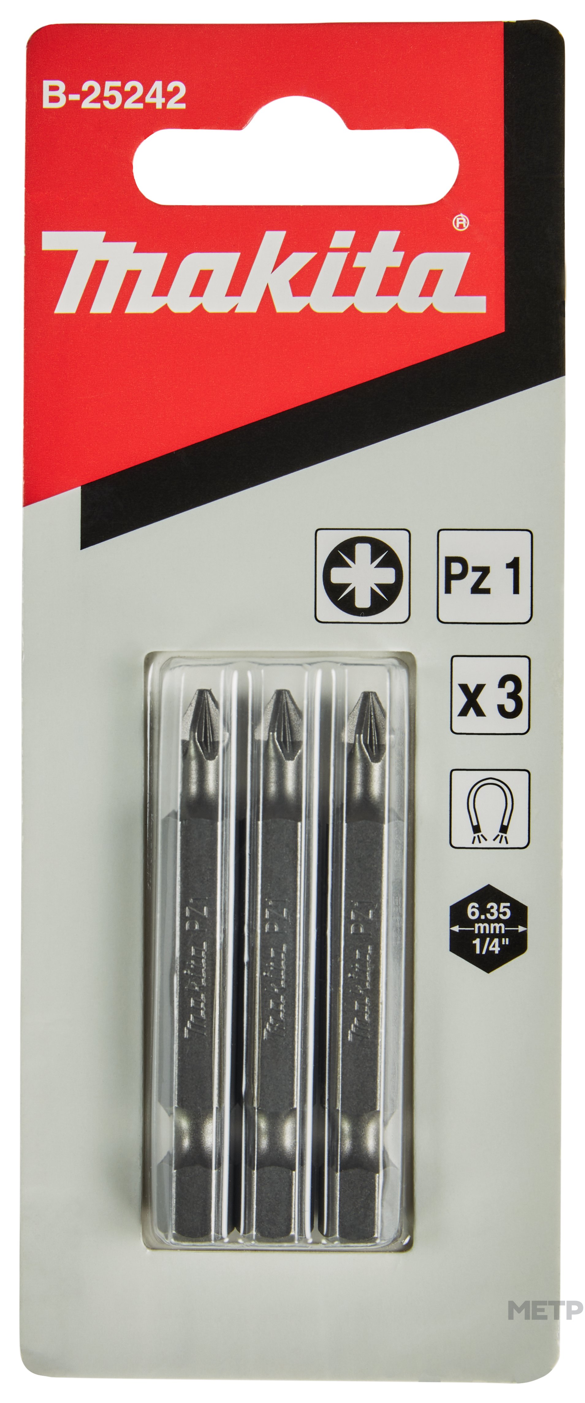 Бита PZ1 50мм 1/4 предназначенных для использования с ручными дрелями и шуруповертами. Для установки в патрон инструмента изделия используют шестигранный хвостовик 1/4', что позволяет их применять с любыми инструментами. Биты Makita обладают специальной формой, что способствует улучшению момента кручения, в результате чего повышается производительность работы.