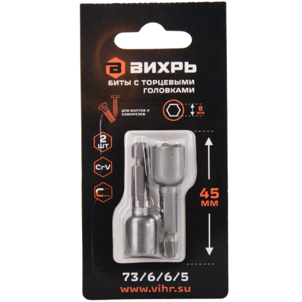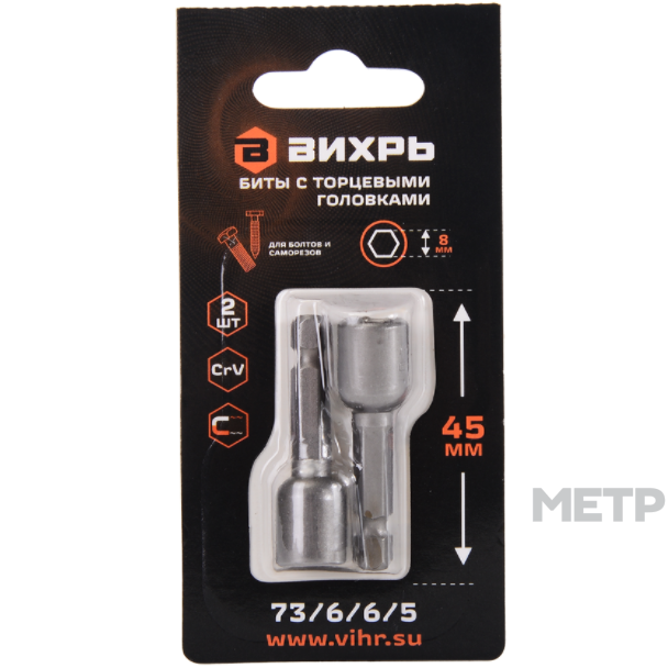 Бита с торцевой головкой М8 45мм магнитная 2шт