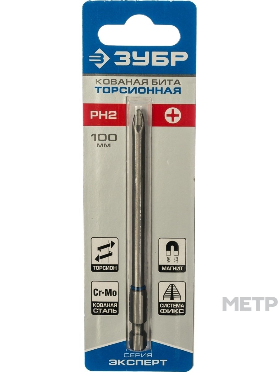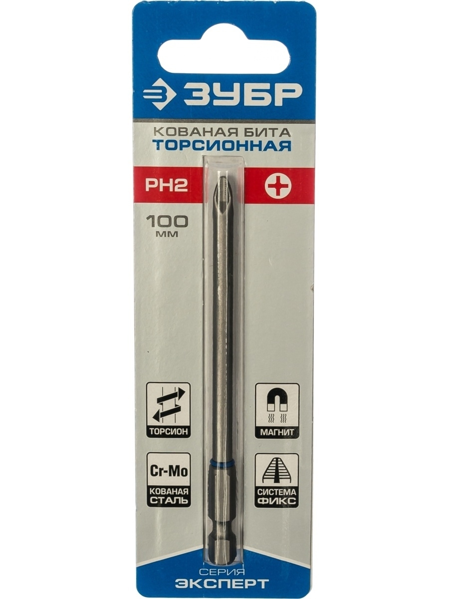Бита Зубр Эксперт PH2 100 мм 1 шт. Бита оснащена торсионной зоной, предотвращающей ее разрушение во время пиковых нагрузок. Также изделие отличается высокой прочностью и надежностью, благодаря кованной основе, выполняется из хромомолибденовой стали и хорошо “сидит” в шуруповерте.