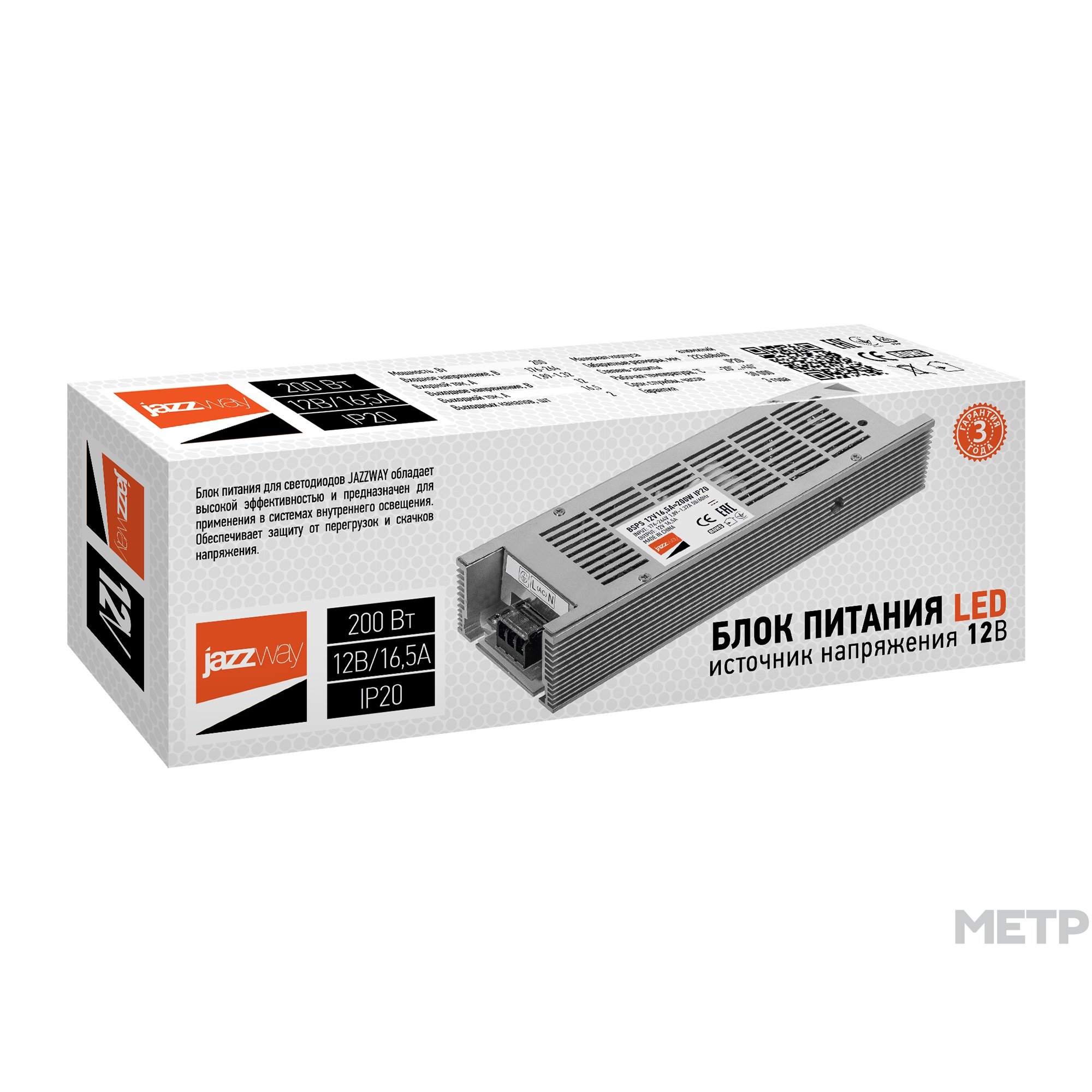 Блок питания блок питания для светодиодной ленты Jazzway 12 В 200 Вт IP20 предназначен для отдельного питания светодиодной ленты в системах внутреннего и внешнего освещения. Выбор блока питания для конкретного применения зависит от номинального напряжения или тока работы светодиодов, общей потребляемой мощности и параметров напряжения питающей сети. Параметры напряжения сети должны находиться в рабочем диапазоне. Для стабильной работы необходимо оставлять запас по мощности примерно в 20%. Защита от перегрузок и скачков напряжения срабатывает при перегрузке свыше 120% от номинальной мощности. Автоматический перезапуск при восстановлении рабочих параметров. Защита от перегрева — отключение происходит при температуре свыше 105°C. Автоматический перезапуск при восстановлении рабочей температуры у блоков питания мощностью свыше 60 Вт. Перегрузки более 80–85% сокращают срок службы блоков питания.