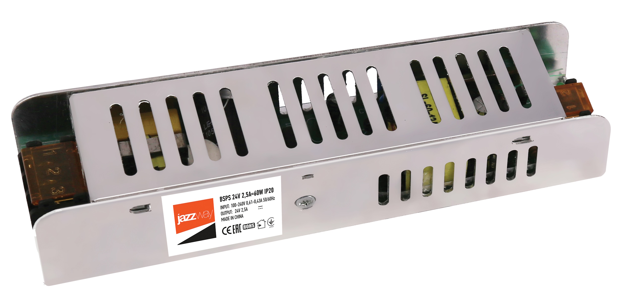 Блок питания блок питания для светодиодной ленты Jazzway 24 В 60 Вт IP20 предназначен для отдельного питания светодиодной ленты в системах внутреннего и внешнего освещения. Выбор блока питания для конкретного применения зависит от номинального напряжения или тока работы светодиодов, общей потребляемой мощности и параметров напряжения питающей сети. Параметры напряжения сети должны находиться в рабочем диапазоне. Для стабильной работы необходимо оставлять запас по мощности примерно в 20%. Защита от перегрузок и скачков напряжения срабатывает при перегрузке свыше 120% от номинальной мощности. Автоматический перезапуск при восстановлении рабочих параметров. Защита от перегрева — отключение происходит при температуре свыше 105°C. Автоматический перезапуск при восстановлении рабочей температуры у блоков питания мощностью свыше 60 Вт. Перегрузки более 80–85% сокращают срок службы блоков питания.