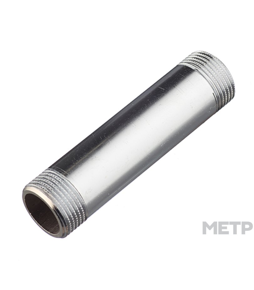 Удлинительный бочонок предназначен для наращивания резьбового соединения элементов трубопровода в системах хол/гор водоснабжения и отопления. Удлинитель имеет корпус круглого сечения с наружной резьбой (резьба с двух сторон одинаковая по длине, в отличие от сгона). Для получения герметичного соединения со стороны резьбового элемента, при установке соединителя, необходимо использование таких уплотнительных материалов как сантехнический лен и паста и/или тефлоновая лента (лента ФУМ) и/или анаэробный герметик. Соединение получается разъемным, что позволяет при необходимости произвести обслуживание участка трубопровода, кроме того, возможно повторное использование фитинга. Замоноличивание разъемных соединений в строительные конструкции – недопустимо. Фитинг сделан из латунного сплава, благодаря минимальному содержанию свинца в сплаве, фитинг подходит для использования в системах питьевого водоснабжения. Для защиты от коррозии и придания изделию эстетичного вида как на наружную, так и на внутреннюю поверхности фитинга нанесено гальваническое хромированное покрытие.