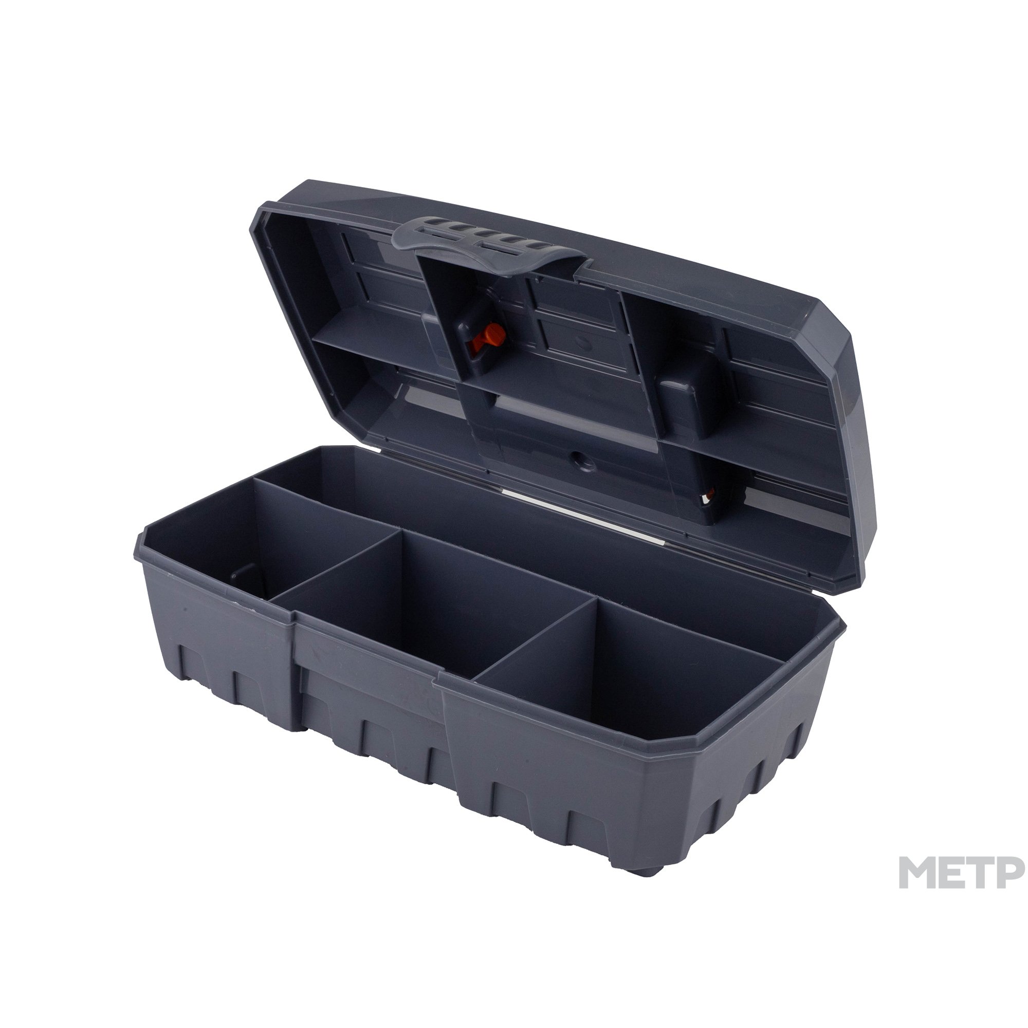 Бокс д/хранения "Techniker" 9" 236*131*84мм Серо-свинцовый/оранжевый предназначен и помогает содержать в порядке и быстро находить необходимые инструменты и другие мелкие предметы, защищая их от пыли и грязи при длительном хранении. Ручка помогает перемещать ящик. Идеален для использования дома, на даче, в гараже.