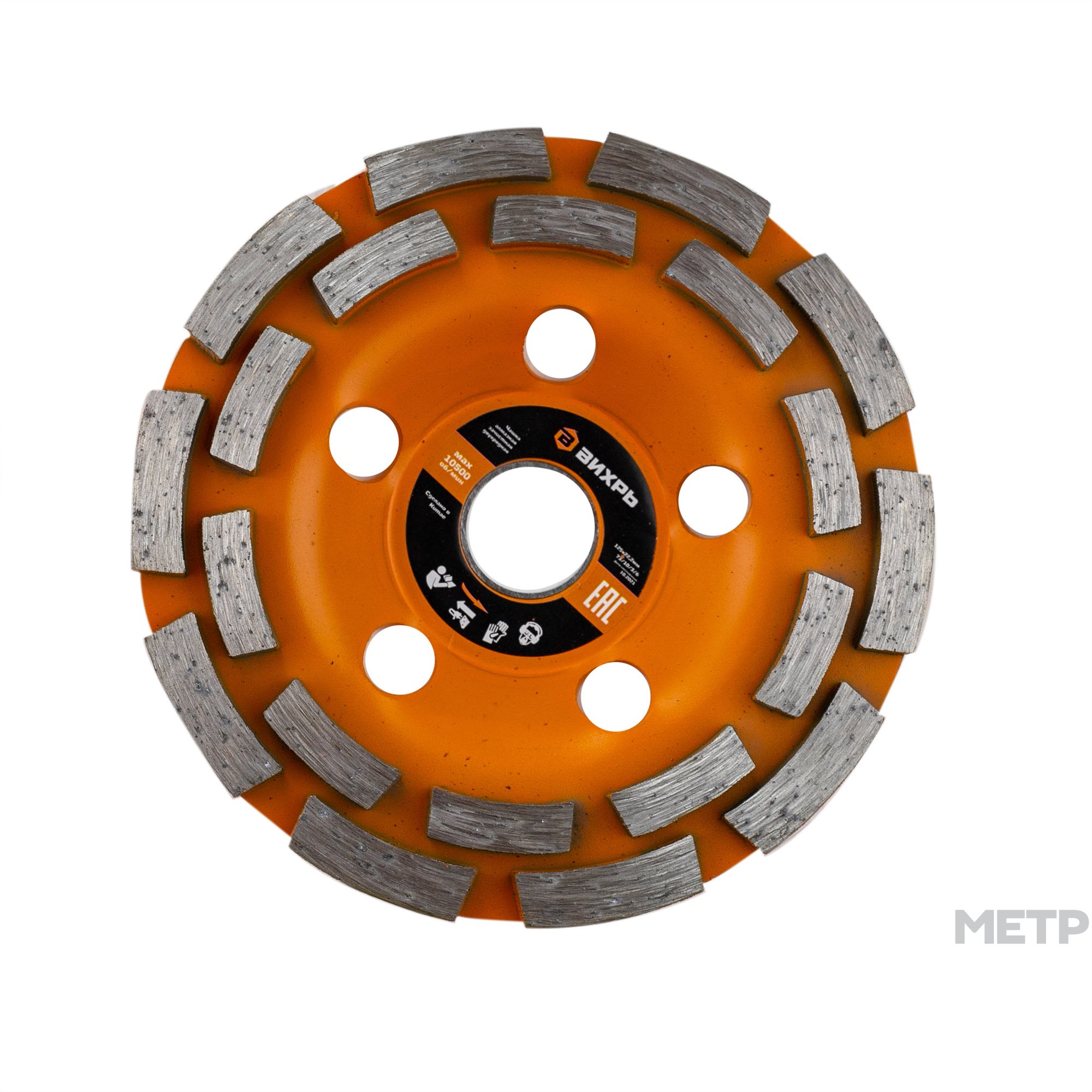 Чашка шлифовальная Вихрь 125 мм по бетону используется при выполнении выравнивания и зачистки бетонных поверхностей. При помощи данного инструмента можно удалить неровность, избавиться от старого слоя краски или другого покрытия. Алмазное напыление делает работу быстрой и эффективной.