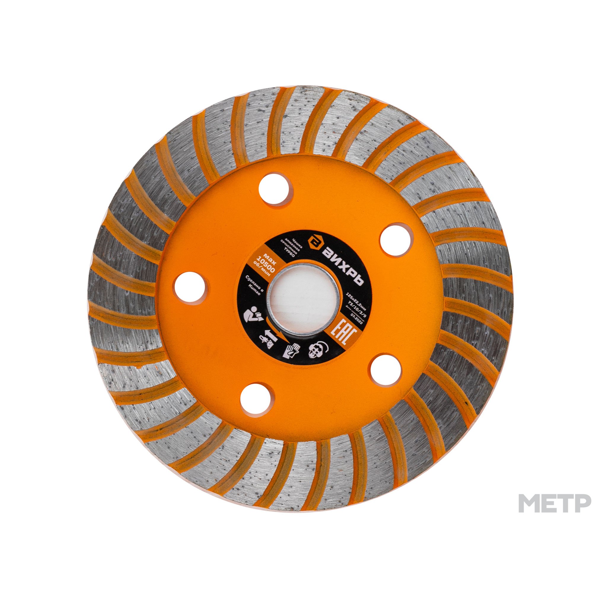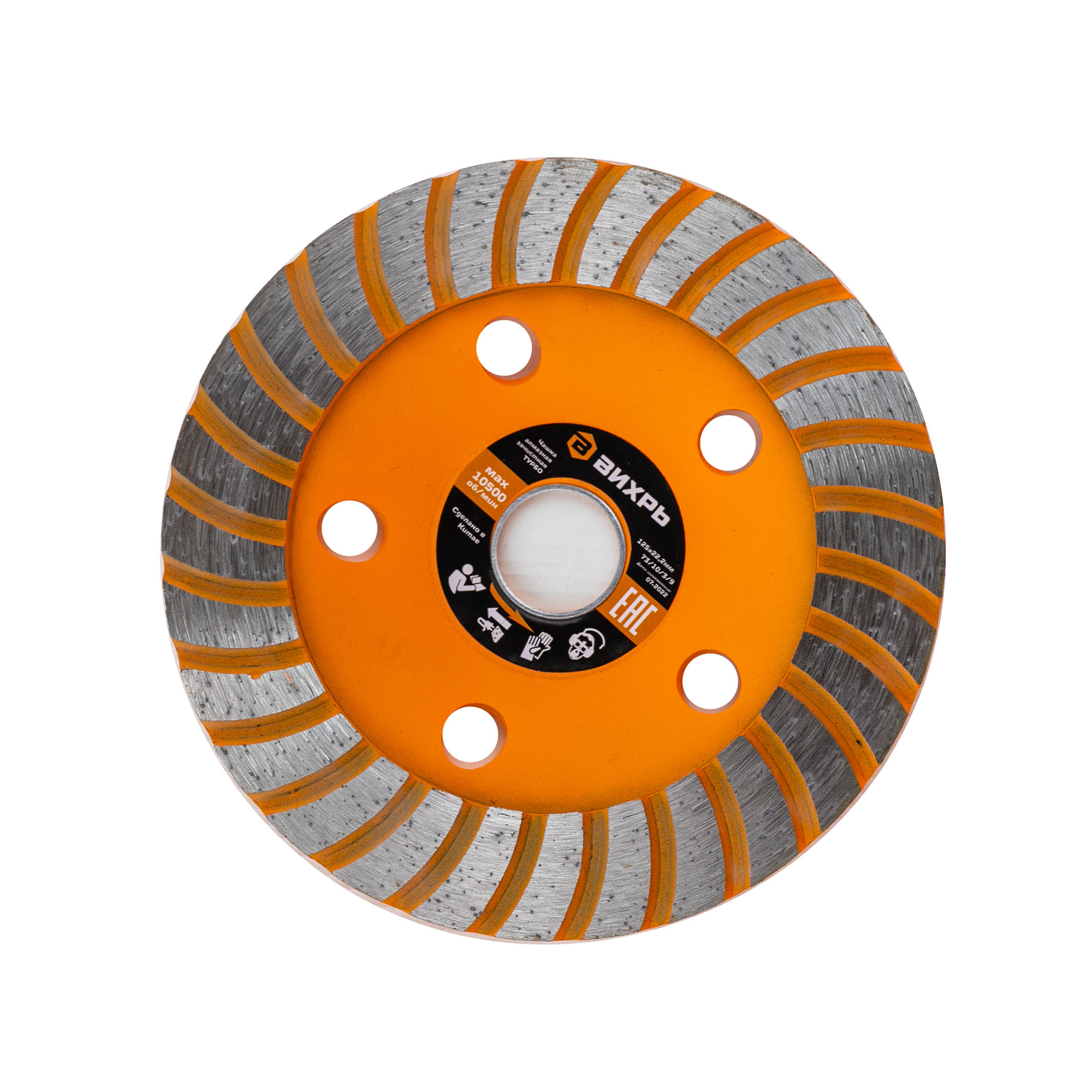 Чашка шлифовальная Вихрь Турбо 125 мм по бетону имеет качественное алмазное покрытие. При помощи данного инструмента выполняется шлифование бетонных и каменных поверхностей. Насадка позволяет избавиться от неровностей и удалить старый слой лакокрасочного покрытия.