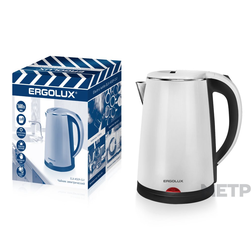 Чайник Ergolux ELX-KS09-C41 (1600Вт), корпус – белый пластик. Изящная модель, которая будет хорошо сочетаться с интерьером кухни/офиса. Электрические чайники имеют целый ряд достоинств: быстро кипятят воду, самостоятельно выключаются, сохраняют температуру жидкости.