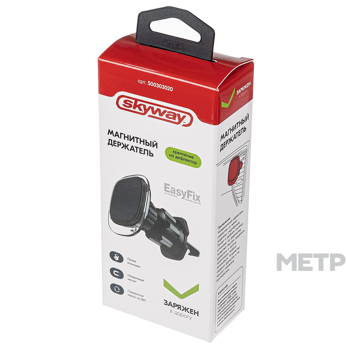 Держатель для навигатора и телефона магнитный на дефлектор SKYWAY - настоящий помощник в дороге. Конструкция держателя поворотная, что позволяет расположить мобильное устройство под удобным углом. В комплекте идут две металлические пластины диаметром 4 см и 4,5*6,5 см. Пластины можно разместить как на внешнюю, так на внутреннюю сторону чехла для придания ему магнитных свойств.