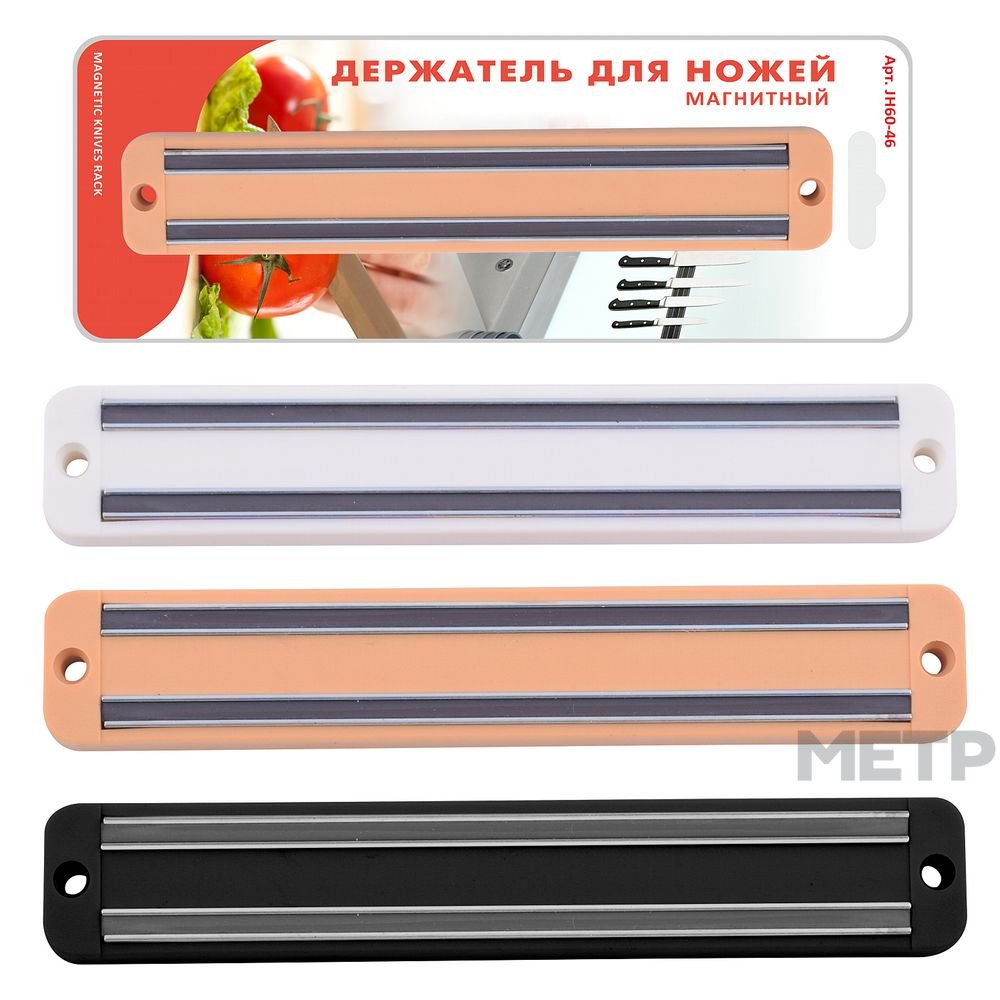 Держатель для ножей магнитный Мультидом 19 см — удобное кухонное приспособление для стальных изделий. Устройство сделано из пластика и двух магнитных вставок. Держатель монтируется на стену двумя шурупами. Стальные изделия примагничиваются к держателю и не царапают поверхность друг друга, сохраняя свой первоначальный вид на долгие годы.