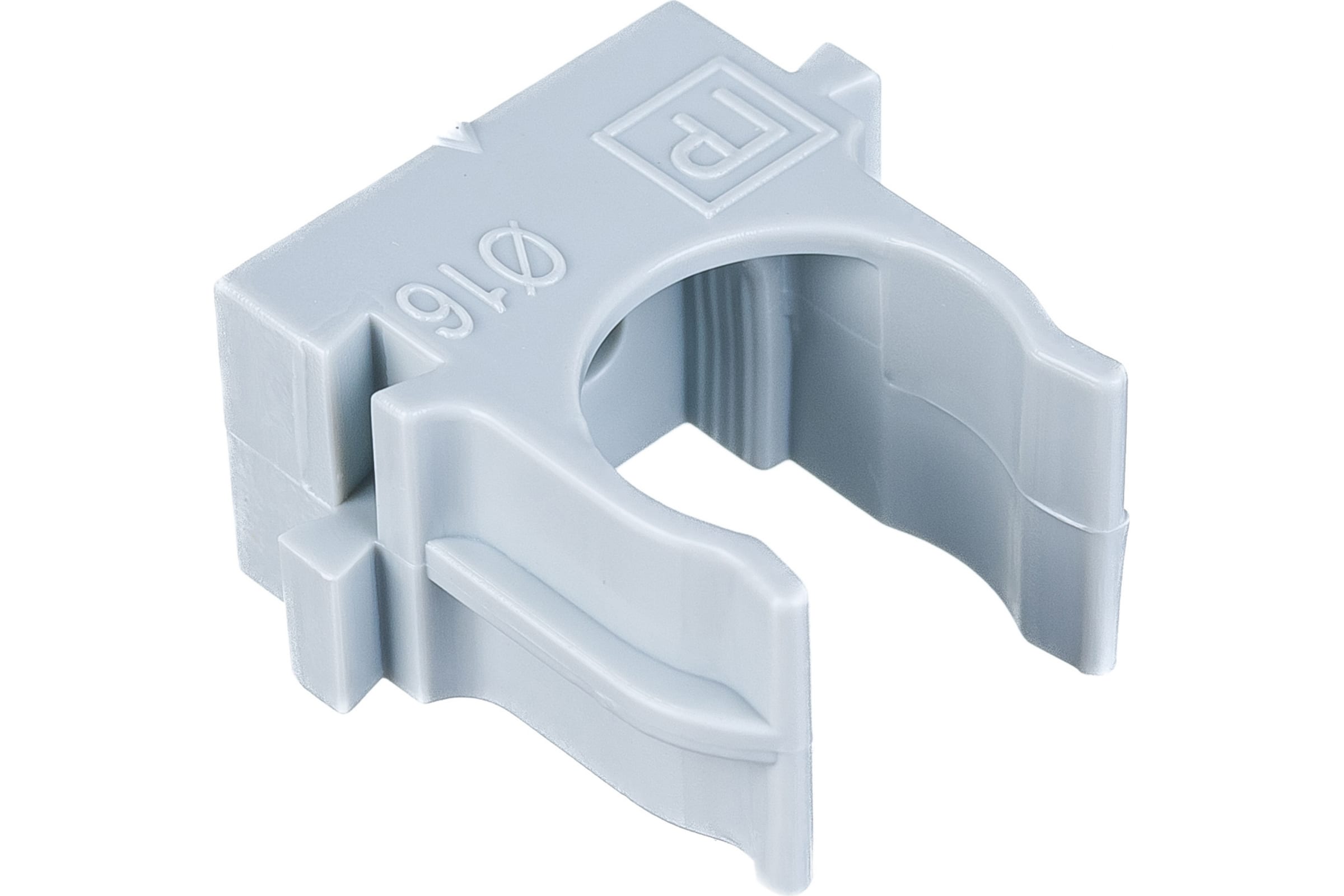 Держатель для труб Промрукав 16 мм цвет серый из полистирола, с соединением «ласточкин хвост» и широкими лапками, подходит для блочного монтажа крепеж-клипс. Надежно фиксирует трубу, не позволяя ей заминаться. Эксплуатируется в температурном режиме от -25 до +60 °, монтировать можно при температурах от -5 до +50 °, применяя пневмоинструмент. Произведено в России.