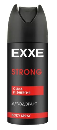 Дезодорант-спрей EXXE STRONG. Этот компактный флакончик объемом 150 мл создан для тех, кто ведет активный образ жизни и хочет чувствовать себя уверенно в любой ситуации. EXXE STRONG обеспечивает мощную защиту от пота и неприятного запаха на весь день. При этом формула продумана так, чтобы не оставлять липкости и белых следов на одежде. Легкое нанесение распылением позволяет мгновенно освежиться перед важной встречей, тренировкой или прогулкой. Забудьте о дискомфорте — с дезодорантом ваша кожа остается сухой, а настроение — отличным. Простое и надежное решение для ежедневного комфорта!