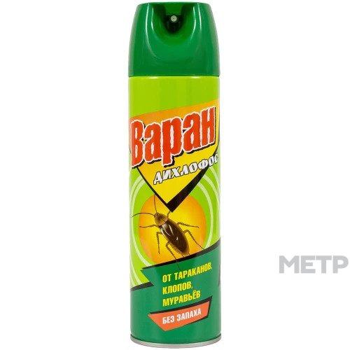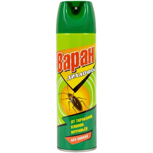 Дихлофос от тараканов Варан 440 мл – высокоэффективный препарат, характеризующийся высокой скоростью действия, направленным на устранение тараканов, которые часто переносят на своих лапках патогенных микроорганизмов. Благодаря высвобождению мелкодисперсного средства под давлением, активный компонент достигает самых труднодоступных мест в помещении.