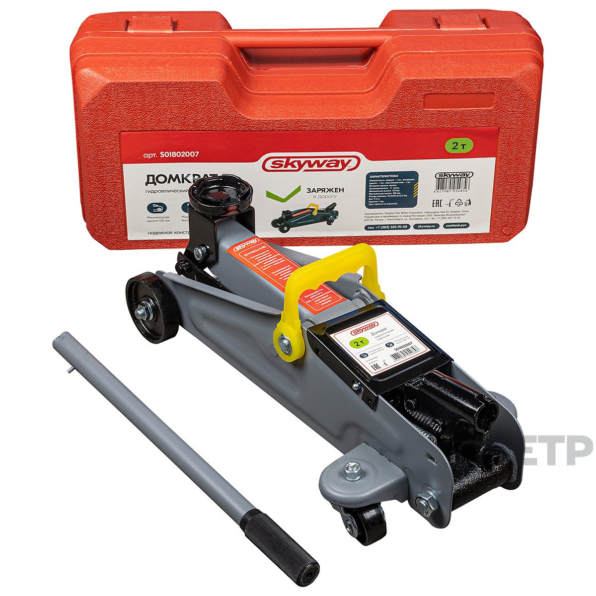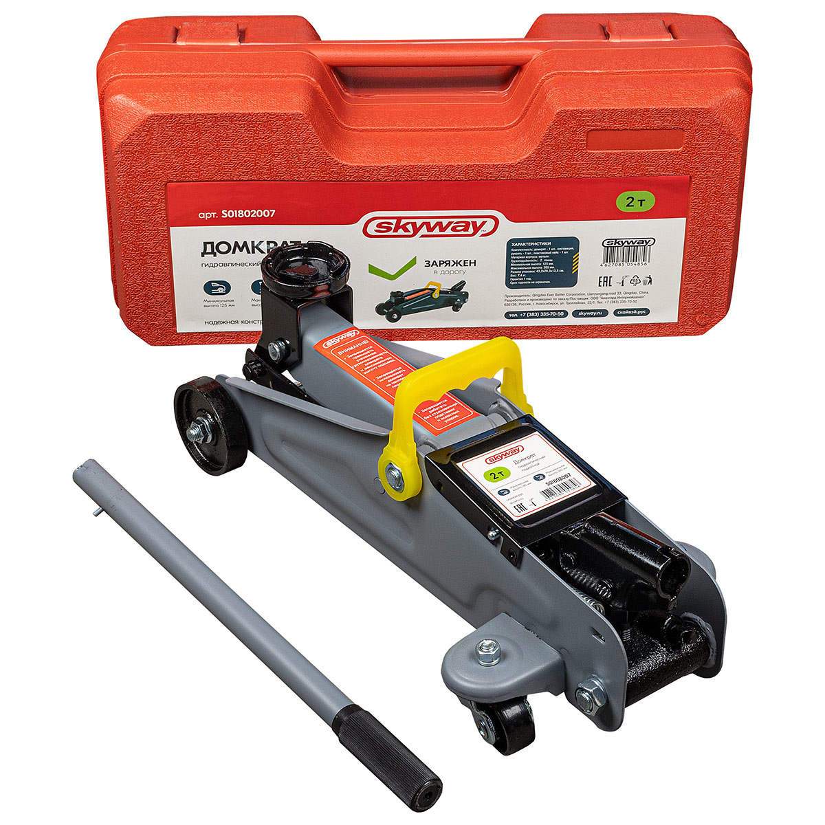 Домкрат гидравлический SKYWAY 2 т - полностью металлическая конструкция узлов и агрегатов обеспечивает высокую надежность и отказоустойчивость. Перепускной клапан предохраняет домкрат от поломки, если вес груза превышает грузоподъемность домкрата.