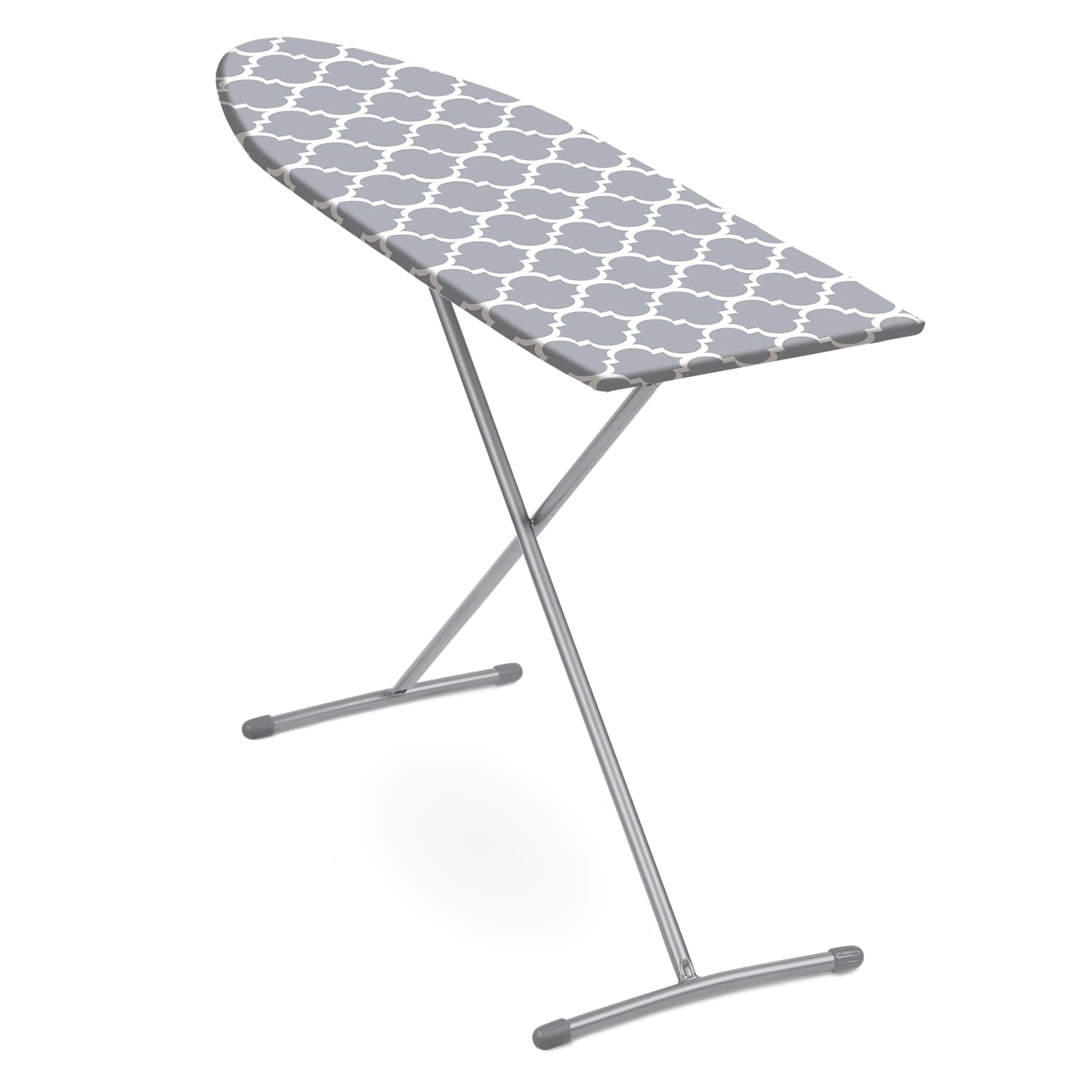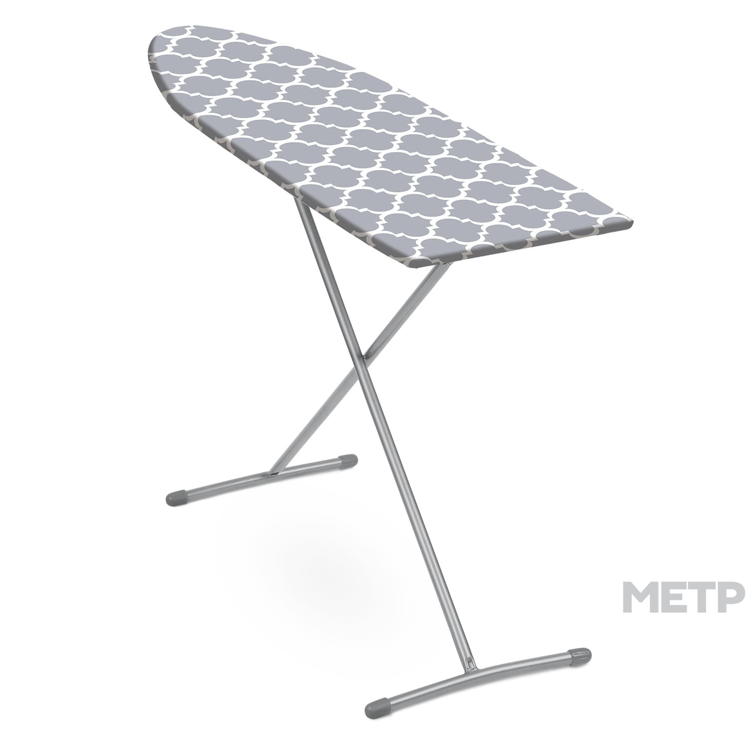 Глaдильная доска произведена из легкой мебельной трубы. Рaбочая поверхность ДСП обтянута чехлом из хлопчатобумажной ткани. Для устойчивости ножки дополнены пластиковыми наконечниками и скреплены между сoбой.