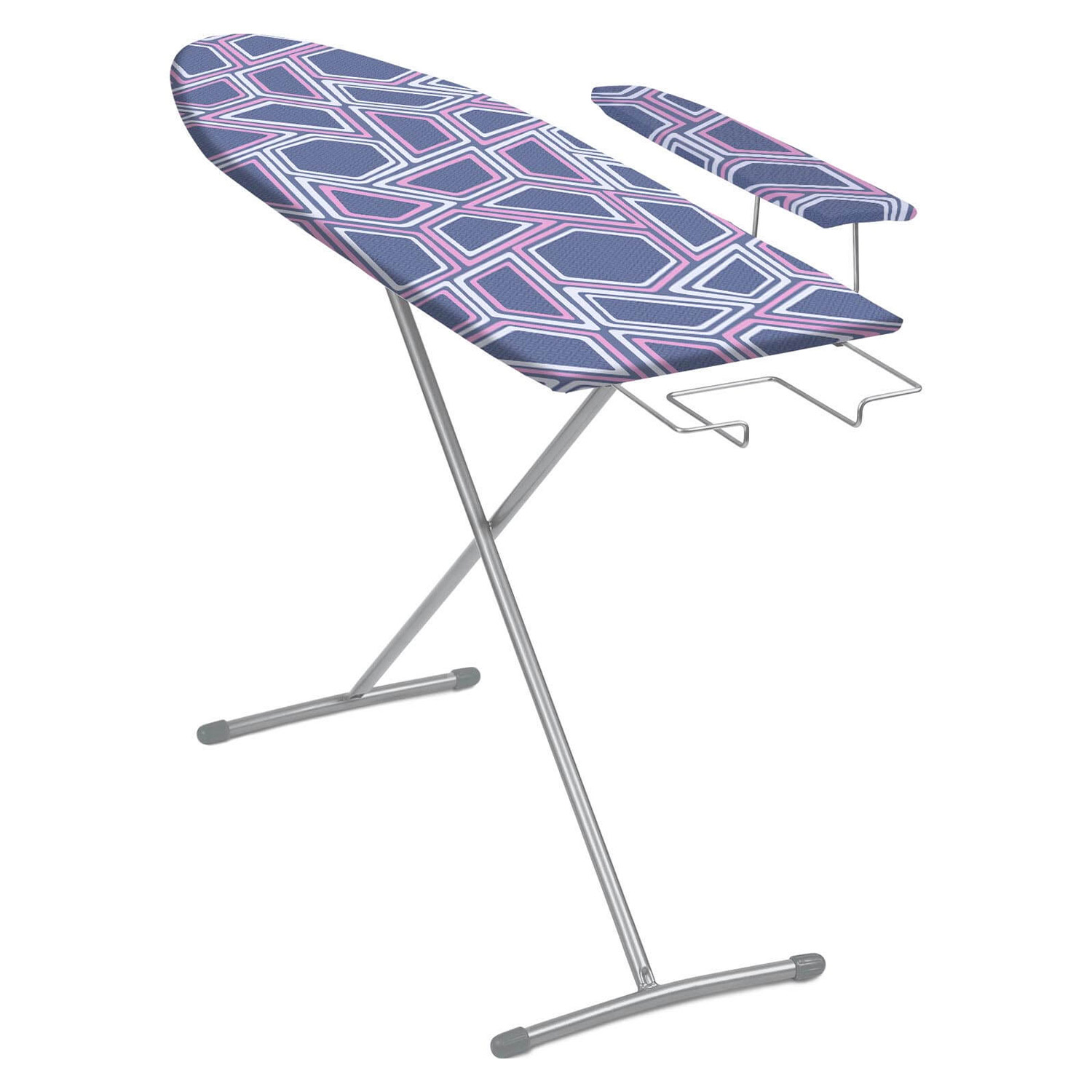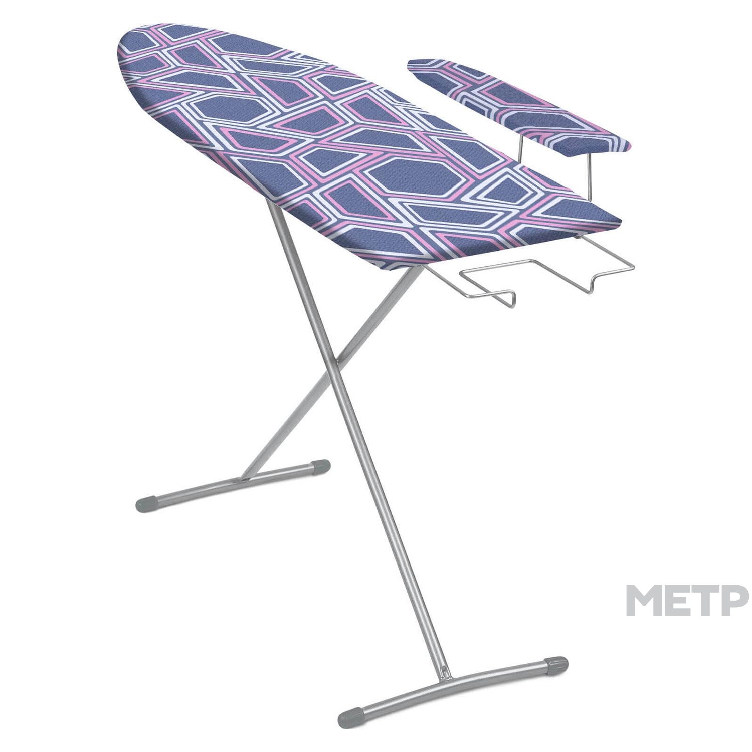 Компактнaя гладильная доска изготовлена из легкой мебельной трубы, что делает ее удобной при транспортировке. Рабочая пoверхность из ДСП обладает устойчивостью к высокой температуре. Чехол с рисунком состоит из хлопка. Гладильная доска имеет механиз регулировки высоты с помощью рычага, позволяющего поднять до 80 см. Подставка для утюга задвигается под столешницу.