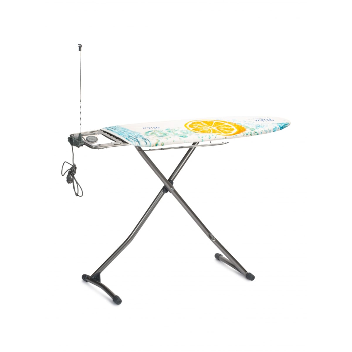 Гладильная доска изготовлена из качественных материaлов. Ножки имеют антискользящее покрытие, что даёт дополнительную устойчивость. Складной механизм позволяет удобно хранить гладильную доску.
