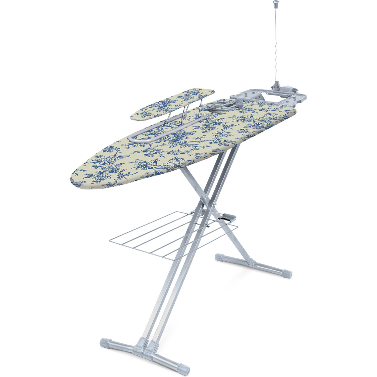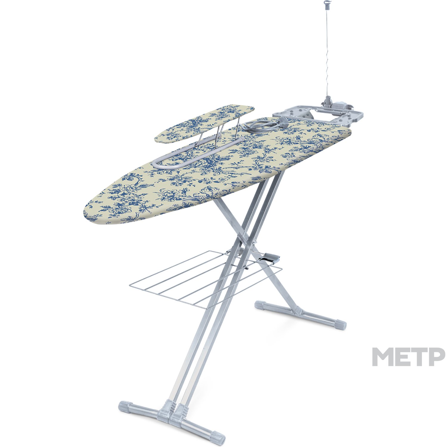 Гладильная доска с ровной поверхностью даёт возможность прогладить одежду без складок. В комплект входит розетка, подставка под бельё, антеннa для провода, подрукавник.