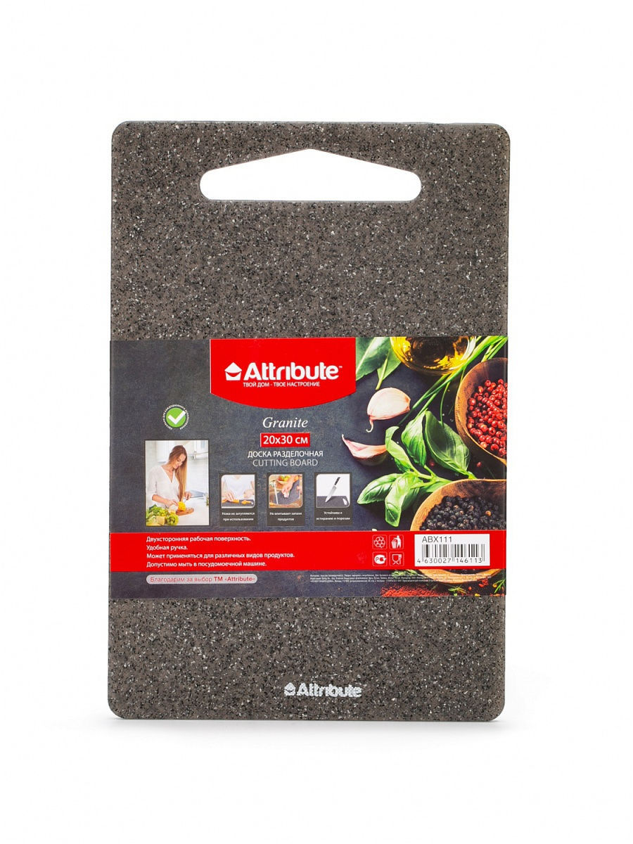 Доска разделочная Granite 30х20 см пластик. Толщина 0,8 см. Простой и привлекательный дизайн будет радовать глаз любой хозяйке. У доски имеется отверстие для крючка, чтобы можно было повесить её на стену. Разделочная доска GRANITE выполнена из высококачественного пластика, подходит для различных видов продуктов. Обладает привлекательным внешним видом и удобной формой. Пластиковая доска очень тонкая, легкая и прочная. Пластик надежный и долговечный, не впитывает запахи, не скользит по столу. После использования изделия необходимо ополоснуть и протереть насухо. Разрешено мыть в посудомоечной машине.