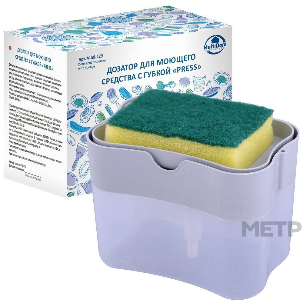 Дозатор для моющего средства с губкой поможет вам без лишних движений пропитать губку моющим средством в необходимом количестве. Порционная дозировка позволит сократить расход моющего средства.