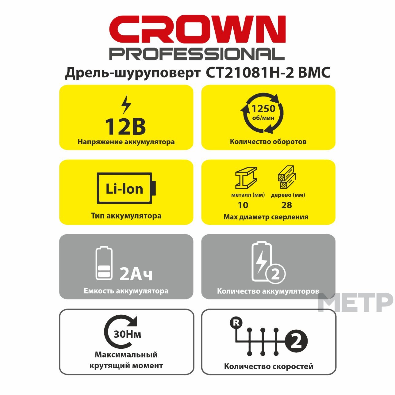 Аккумуляторная дрель-шуруповерт CROWN CT21081H-2 BMC используется для сверления отверстий в разных материалах и монтажа крепежа. Аккумуляторная батарея помогает не зависеть от розетки. Небольшой вес не дает руке уставать. Наличие подсветки обеспечивает работу в темных условиях.