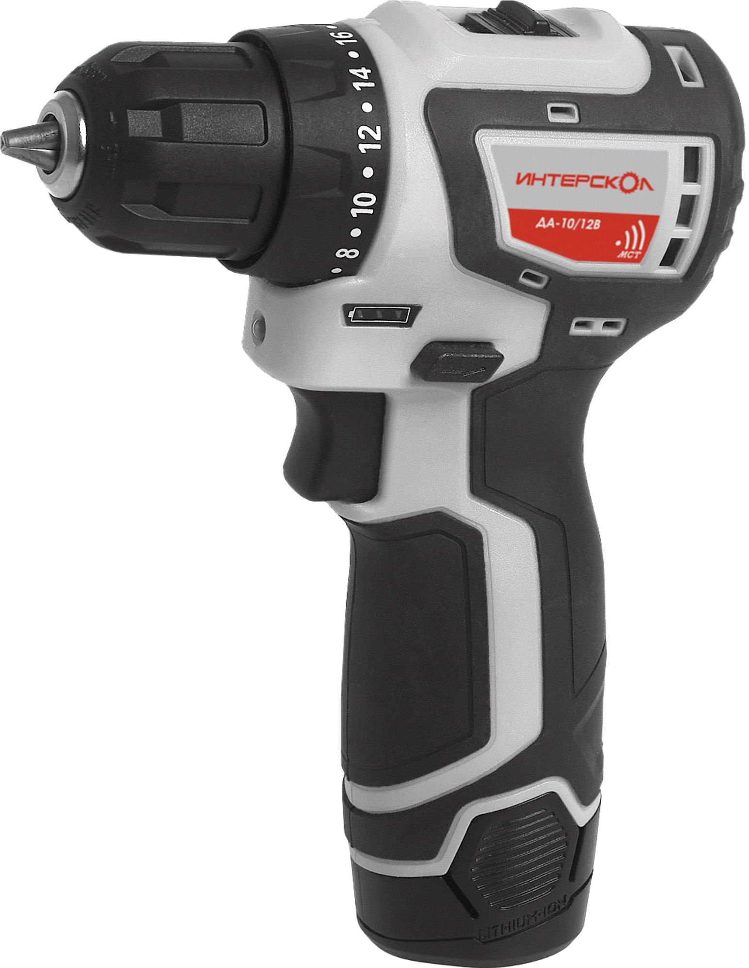 Дрель-шуруповерт аккумуляторная ДА-10/12В Интерскол 12В Li-lon - профессиональная аккумуляторная двухскоростная дрель-шуруповерт, самая компактная в своем классе. Модель с бесщеточным вентильным двигателем оптимально сбалансирована по весу, размерам и мощности для выполнения больших объемов работ с крепежом, сверления отверстий и выполнения сопутствующих работ. Li-ion туннельный аккумуляторный блок обеспечивает компактность исполнения, малый вес и большой запас энергии. Использование вентильного (бесщеточного) двигателя с цифровым управлением позволило получить энергетические характеристики машины, превосходящие характеристики дрелей-шуруповертов с коллекторным приводом с батареями напряжением 14,4В, за счет более высокой энергоэффективности (выше на 30%). Это позволяет выполнять больше работы на одном заряде и таким образом экономить ресурс работы аккумуляторного блока, сохраняя при этом непревзойденную компактность аккумуляторной дрели-шуруповерта.