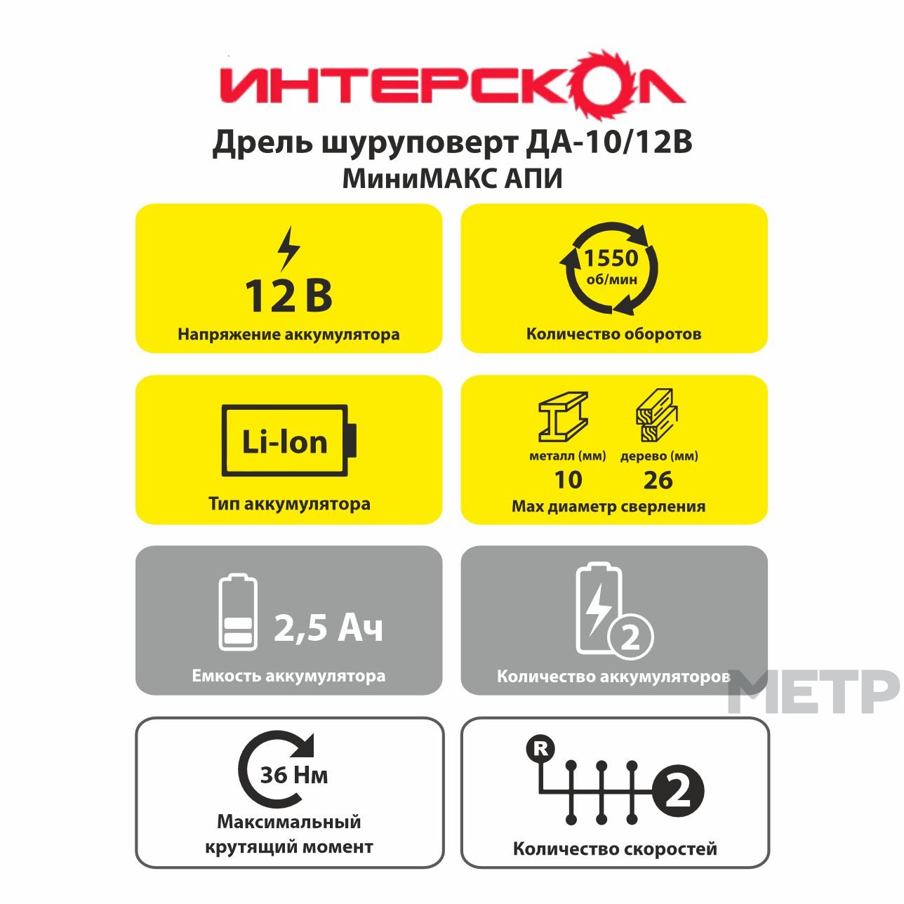 Дрель шуруповерт ДА-10/12В 12Вх2 Li-Ion 2.5Ач 1450об/м 38Нм Интерскол используется для сверления отверстий в деревянных, пластмассовых и металлических изделиях или для работы в качестве шуруповерт. Прорезиненная рукоятка обеспечивает удобное и надёжное удержание инструмента в руке во время работы. Быстрозажимной патрон облегчает замену рабочей оснастки.