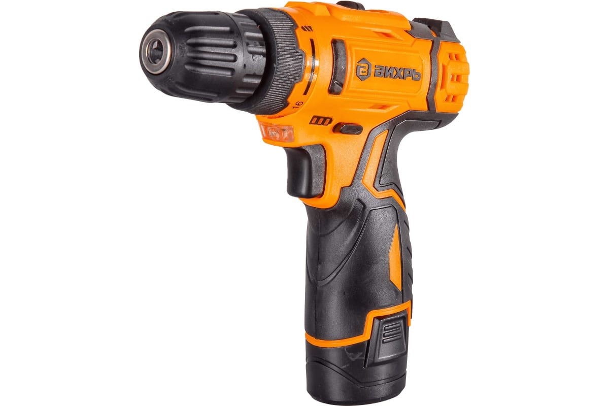 Дрель-шуруповерт Вихрь ДА-12Л-2КА используется для сверления отверстий в деревянных, пластмассовых и металлических изделиях или для работы в качестве шуруповерта. Не требует подключения к сети, что позволяет использовать ее в помещениях, где нет доступа к системе электропитания. Рабочие элементы легко заменить благодаря быстрозажимному патрону. Для ослабления креплений и выкручивания шурупов есть обратный ход. Форма рукоятки удобная, с резиновыми вставками, не скользит в руке. Система охлаждения мотора за счет вентиляционных отверстий на корпусе. С помощью регулировки частоты вращения инструмент можно настроить под необходимую толщину материала. Модель работает от надёжного литий-ионного аккумулятора (Li-Ion).