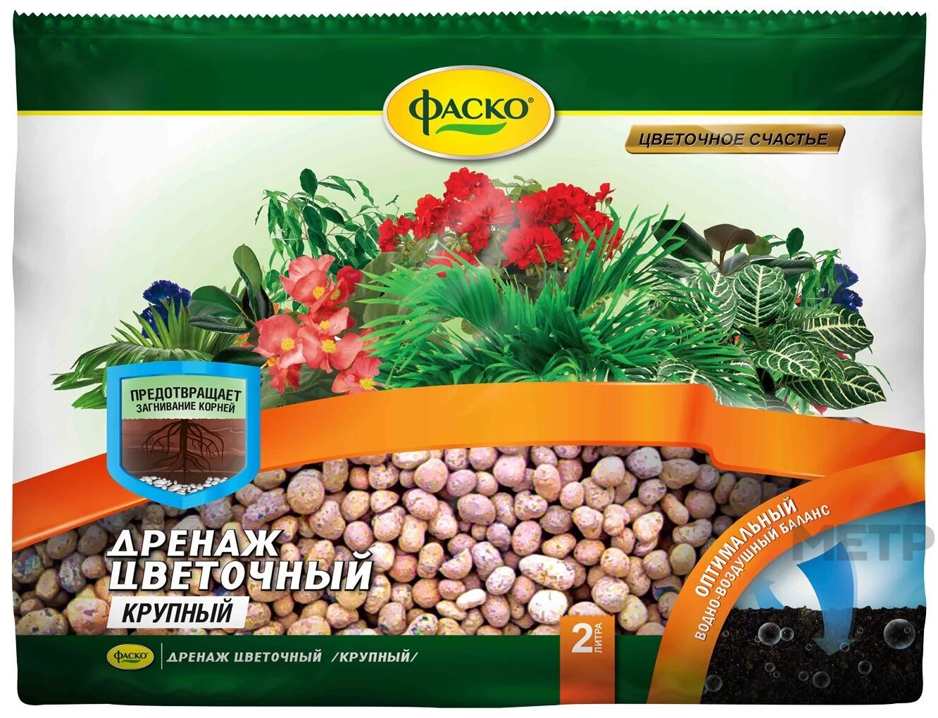 Дренаж керамзитовый крупный Цветочное счастье Фаско 2 л – классическая версия, защиты растения от излишней влаги и отсутствия притока кислорода к корневой системе. Без чего ботанические культуры ссыхаются, останавливают рост или вовсе погибают. Дренаж предназначен для предоставления доступа воздуха к нижним частям растения.