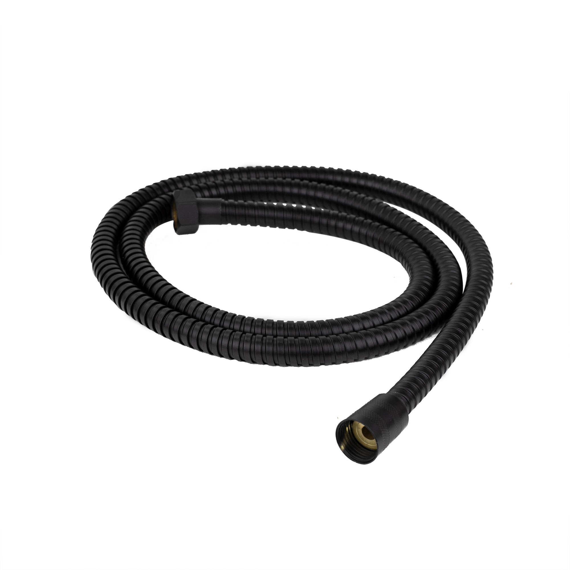 Шланг для душа изготовлен из нержавеющей стали, резины и пластика, имеет порошковое покрытие. Двойная оплетка. Оснащён системой защиты от перекручивания. Фитинги для соединения со смесителем и душевой лейкой обладают стандартным размером соединения (G=1/2), выполнены из латуни. В комплекте 2 силиконовые прокладки. Длина - 1,5 м.
