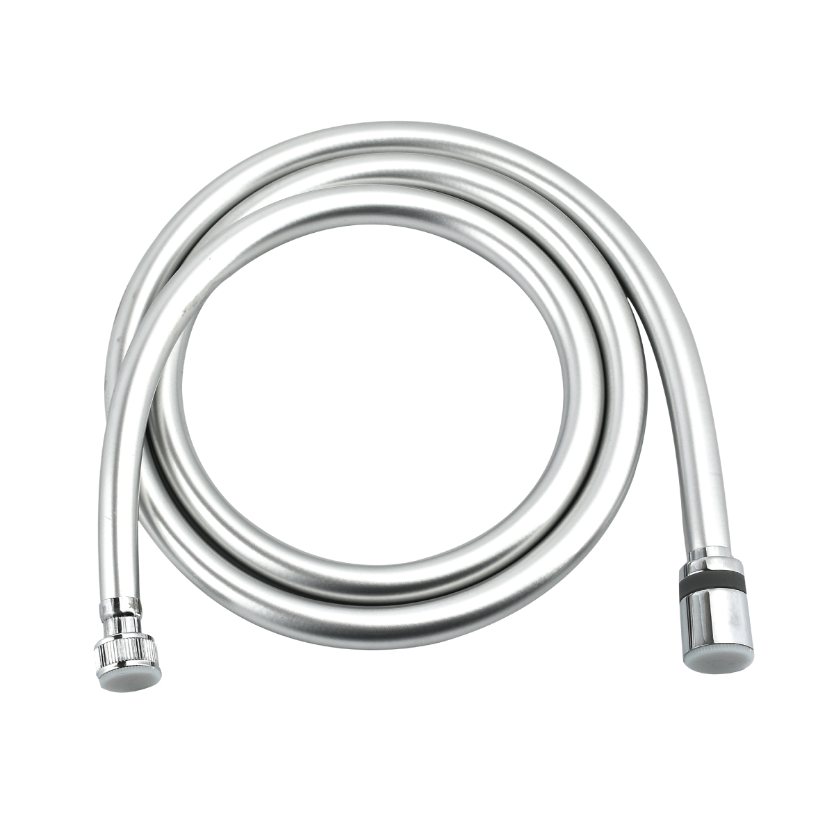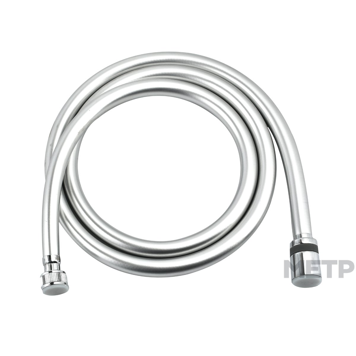 Шланг для душа длиной 150 см, серый цвет, с латунными штуцерами, внутренняя резьба 1/2" для подключения к смесителю и лейке и силиконовыми прокладками.