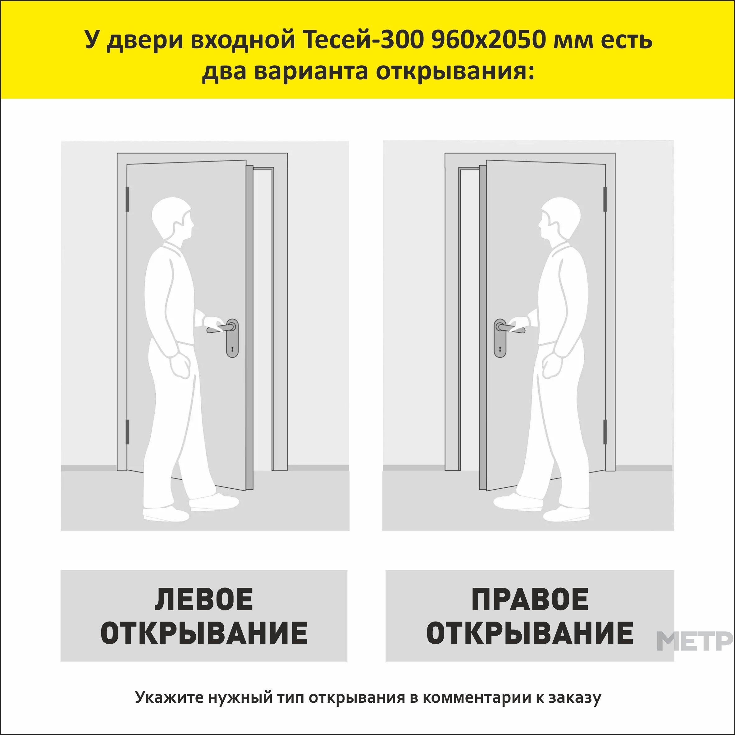 Дверь входная Тесей-300 960х2050 мм подойдет для регионов с продолжительными морозами. Дверь оснащена терморазрывом, который эффективно снижает потери тепла и помогает поддерживать стабильный микроклимат внутри. Утеплитель из пениполистирола в сочетании с тремя контурами уплотнителей гарантирует защиту от холода, запахов и уличного шума. Дверь имеет два варианта открывания – левое и правое. Укажите нужный тип открывания в комментарии к заказу.