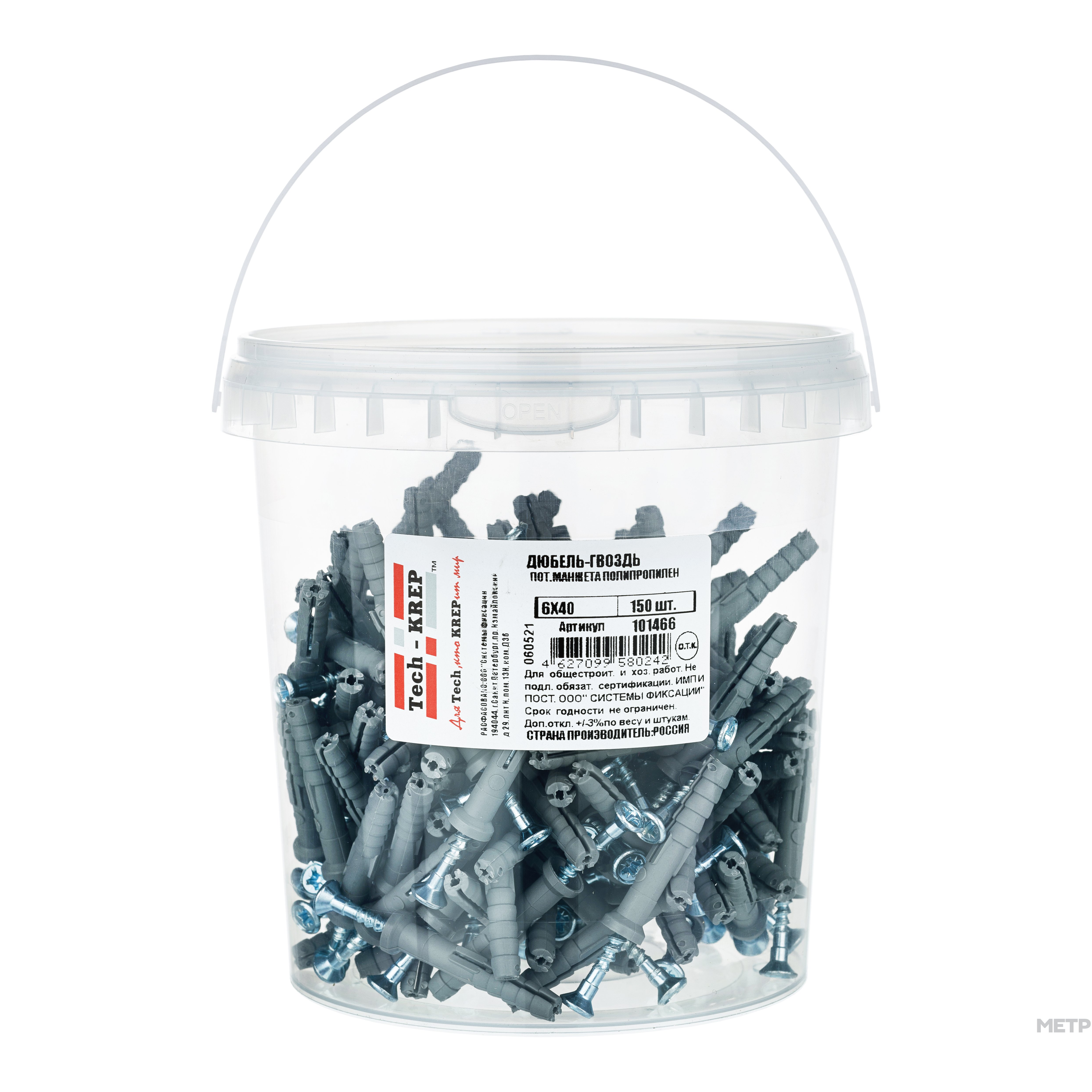 Дюбель-гвоздь 6х40мм потай бортик 150шт ведро/18