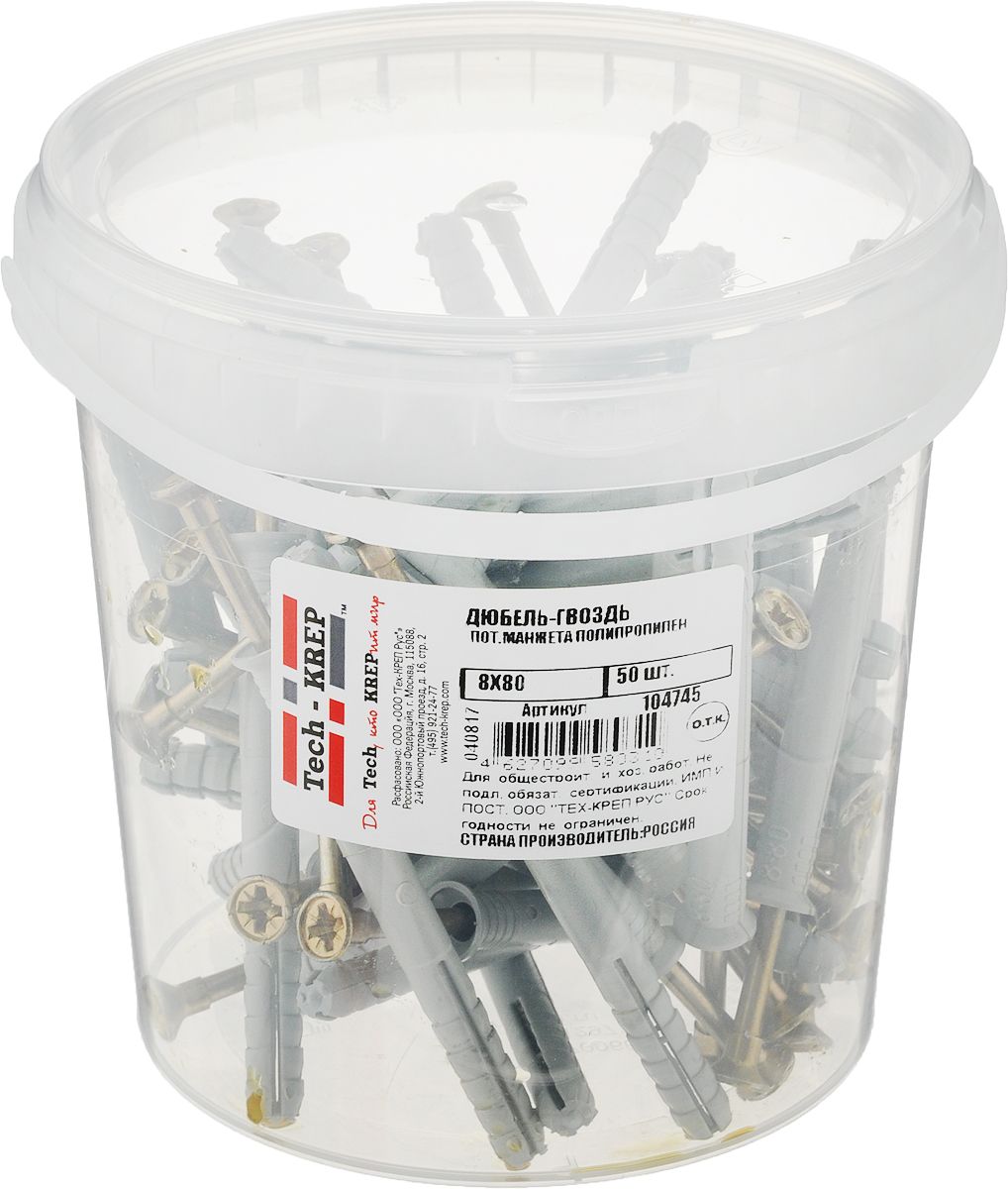 Дюбель-гвоздь 8х80мм потайной бортик полипропиленовый 50шт ведро/9