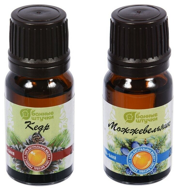 Эфирное масло Банные штучки 2 шт кедр/можжевельник (10 мл баночки) – это букет ароматов хвойного леса для вашего дома. Запахи специально подобраны с учетом возможности сочетания друг с другом. Двойной эффект от обоих ароматов позволит создать атмосферу настоящего леса в вашей бане/ванной комнате.