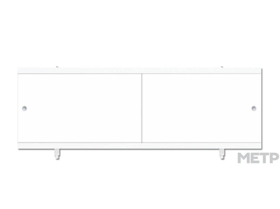 Экран для ванны МетаКам Кварт 168х56 см (ПВХ + пластик, белый), с панелями раздвижного типа, ножки можно настраивать. Модель является типовым решением для большинства случаев, оформленных в светлых тонах. Применение такого экрана позволит отделить находящиеся под ванной предметы от всего остального.