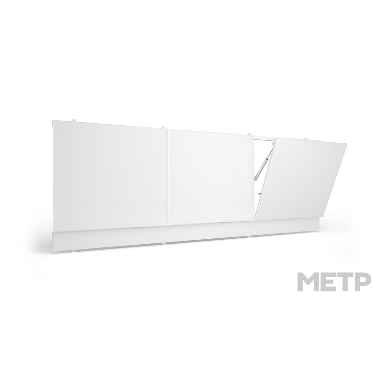 Экран с откидными дверцами МетаКам 149х54 см (стандартный белый), выполнен целиком из пластика, имеет распашные двери и настраиваемые ножки. Модель отличается удобством установки, подойдет к любым оформленным в светлых тонах интерьерам и позволит скрыть все лишнее.