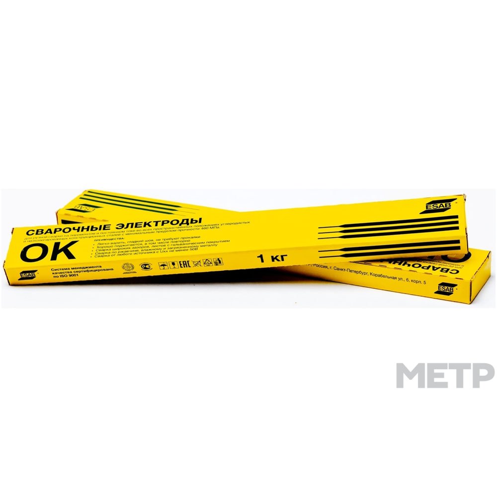 Электроды для сварки ESAB OK-46 2,5 мм 1 кг с целлюлозно-рутиловым покрытием можно легко поджечь (как первично, так и повторно). Варить рекомендуется металлические листы с гальваническим покрытием, допускается обработка загрязненных, грунтованных, оцинкованных, пораженных коррозией поверхностей. Дуга стабильна, швы гладкие, шлак легко удаляется.