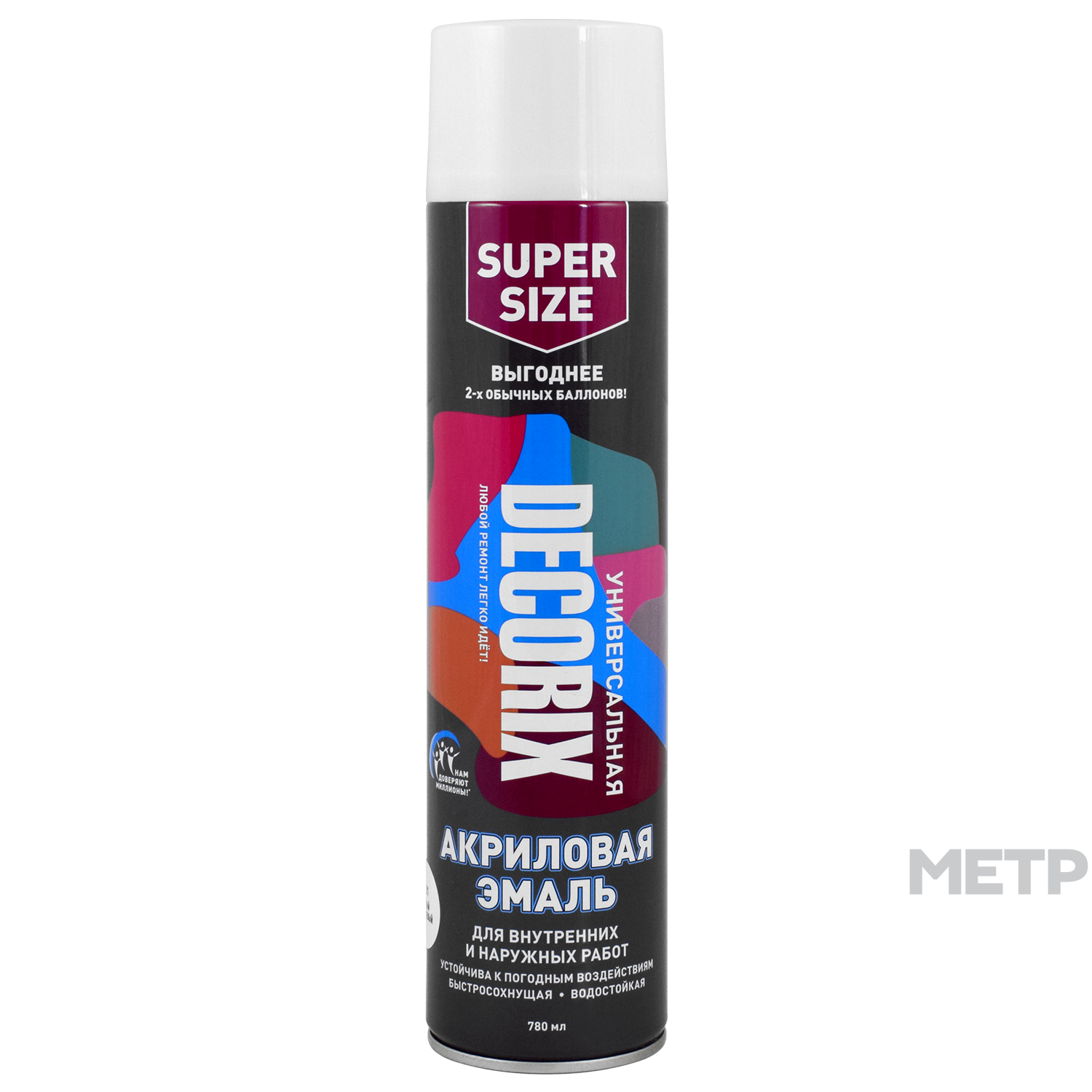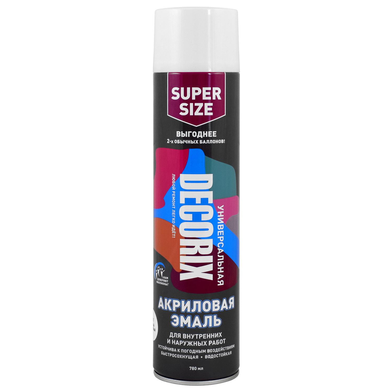 Высококачественная универсальная акриловая эмаль DECORIX белая глянцевая 780 мл используется в декоративно-оформительских работах, строительстве и ремонте.