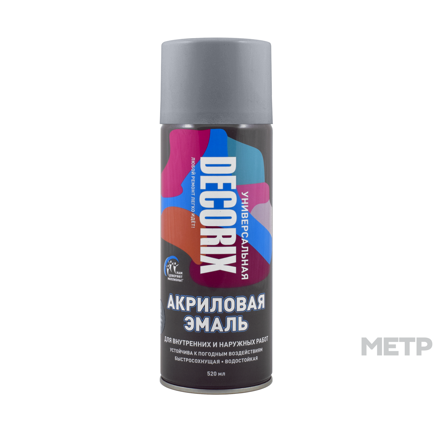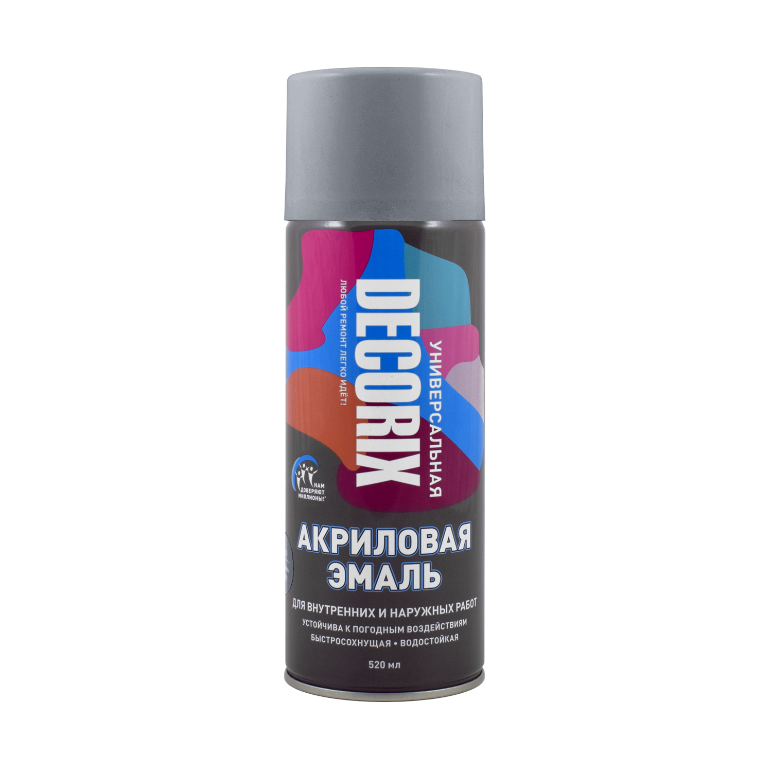 Высококачественная универсальная акриловая эмаль DECORIX графитово-серая 520 мл используется в декоративно-оформительских работах, строительстве и ремонте.
