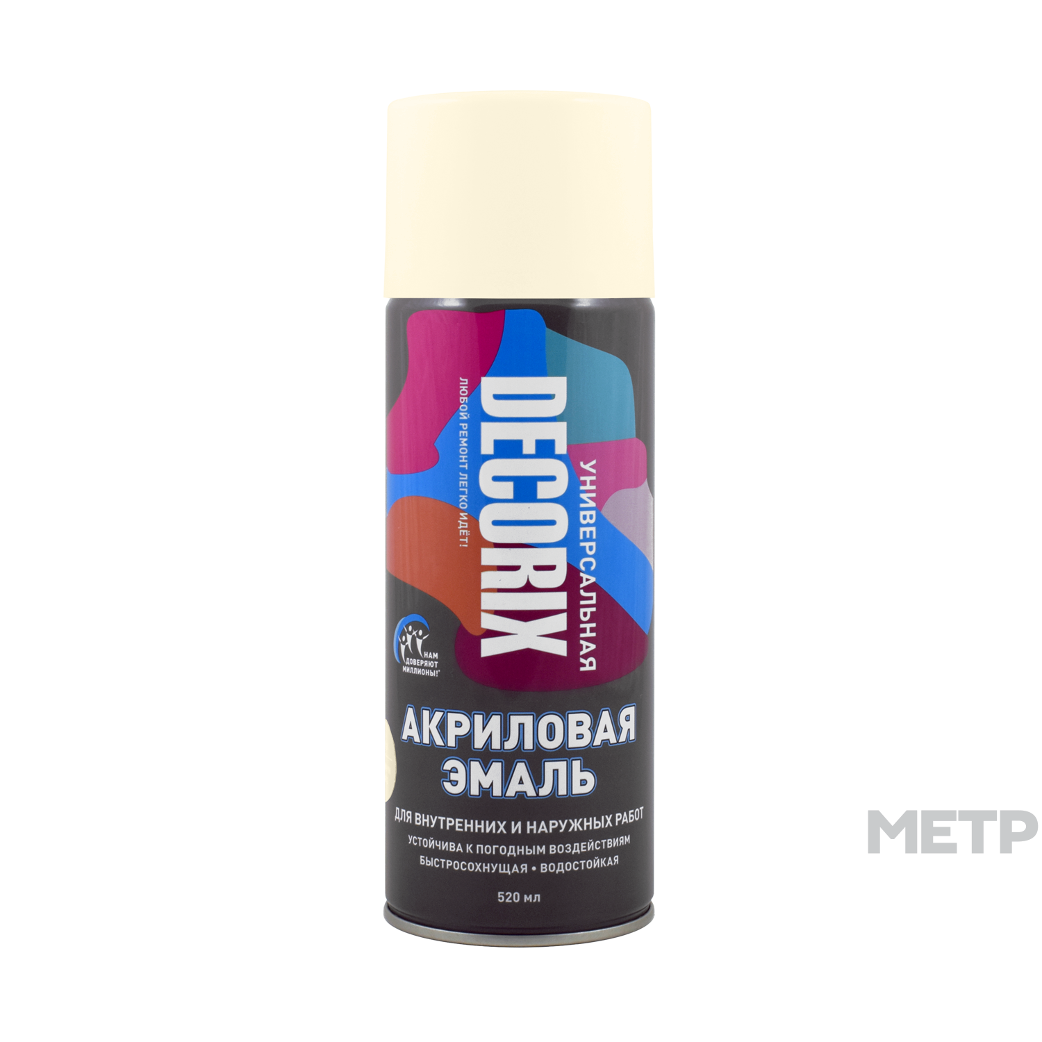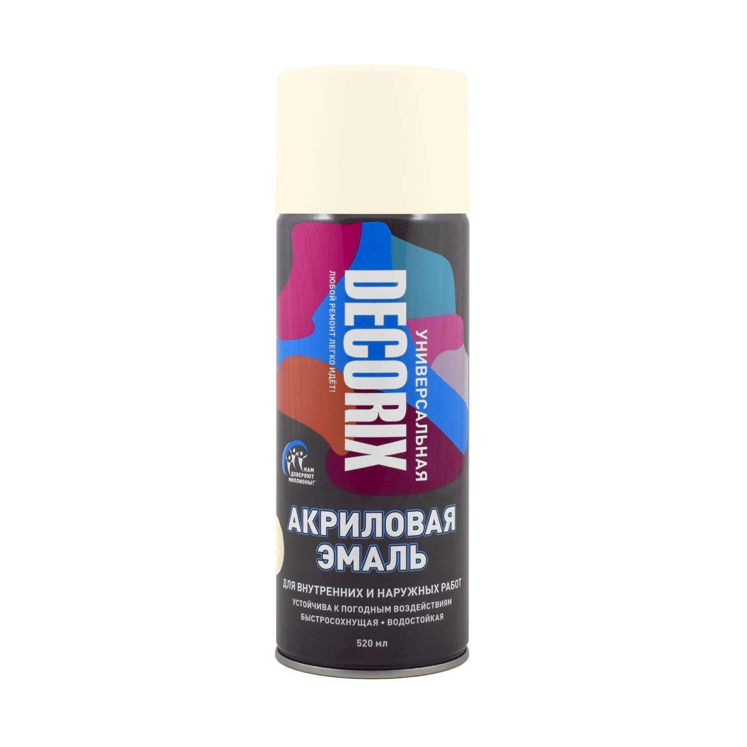 Высококачественная универсальная акриловая эмаль DECORIX слоновая кость глянцевая 520 мл используется в декоративно-оформительских работах, строительстве и ремонте.