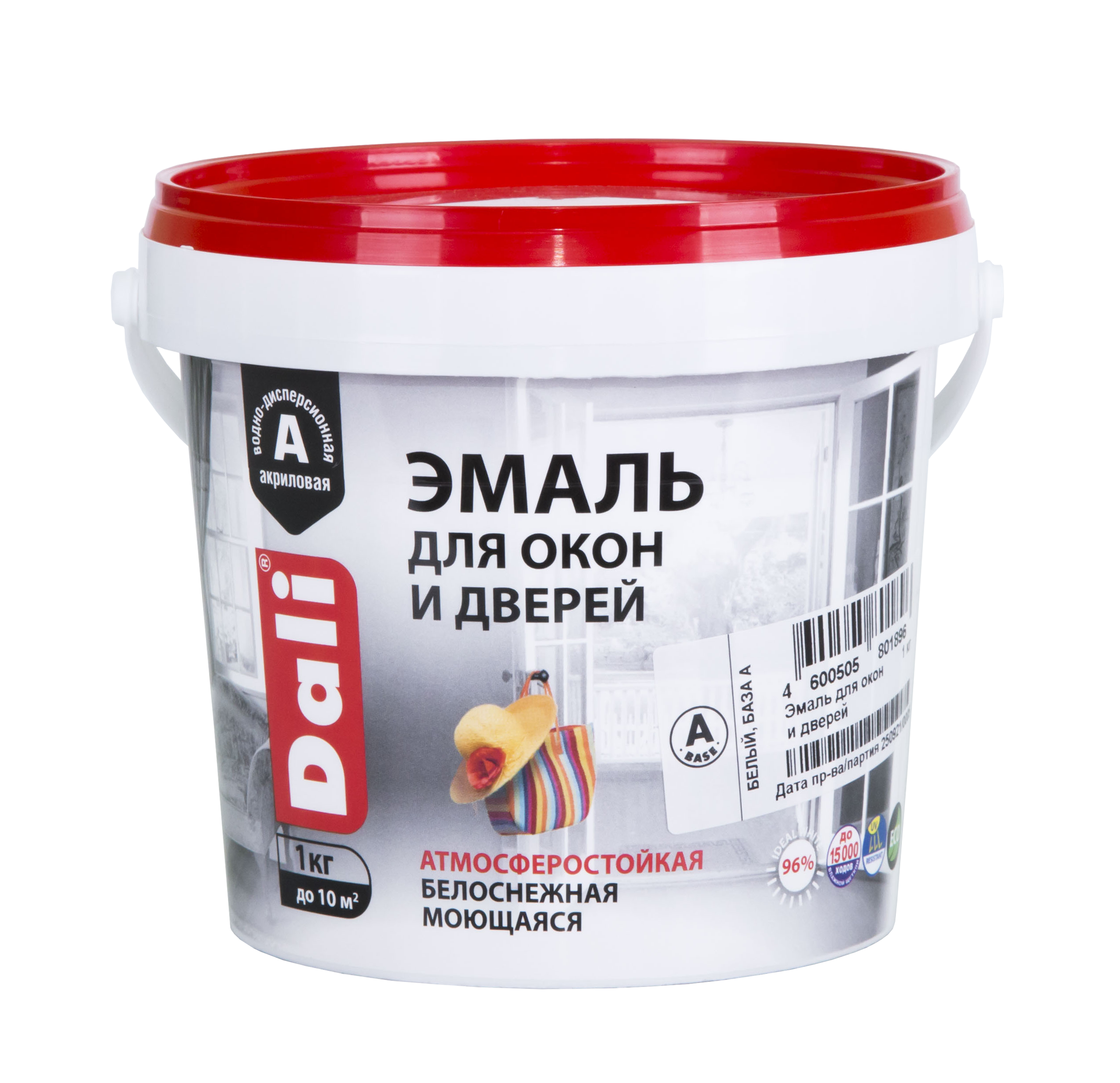 Эмаль акриловая Dali для окон и дверей полуматовая 1 кг, предназначена для защитно-декоративной обработки деревянных окон и дверей. Применяется внутри и снаружи помещений: по деревянным поверхностям (окна, двери, стены*, потолки, предметы интерьера и др.); по материалам на основе древесины (ДВП, ДСП, фанера и пр.). Допускается использование по минеральным поверхностям (кирпич, бетон, штукатурка, гипсокартон и пр.).